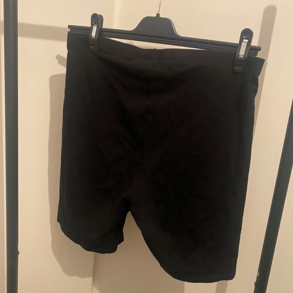 Svarta, enkla cykelshorts från H&M Basics i stretchigt material. De har en midwaist passform och är perfekta för en sportig look eller till vardagsoutfiten. Mjuka och bekväma med en tight passning som sitter snyggt på kroppen.