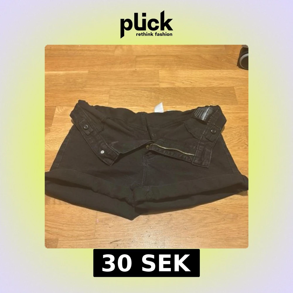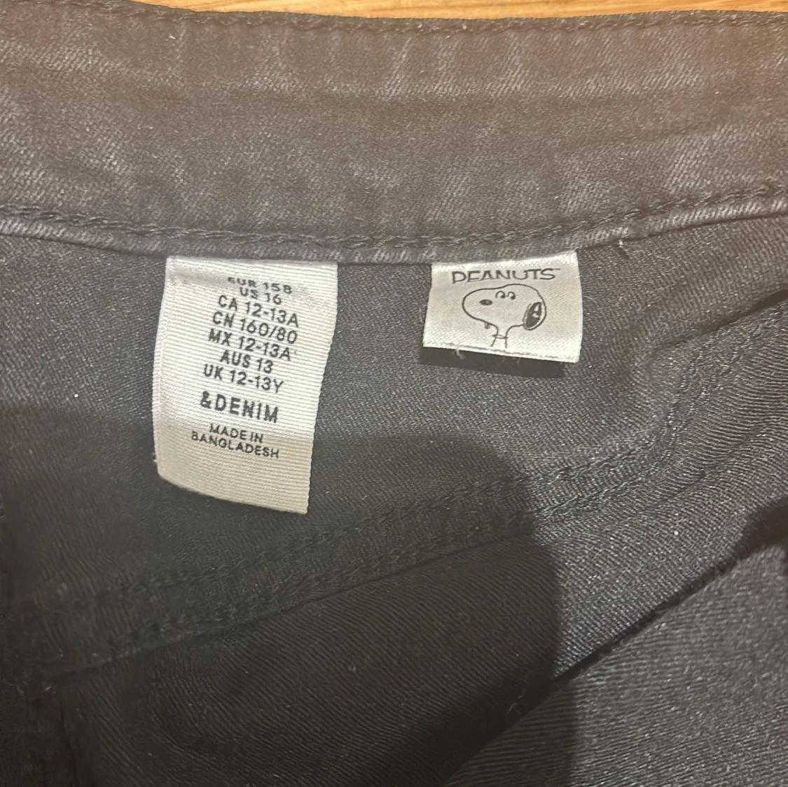 Svarta shorts i denim från &Denim med klassisk femficksdesign, uppvikta benslut och dragkedja framtill. Snygga detaljer med knappar i midjan och en liten Peanuts/Snoopy-etikett på insidan. Perfekta för en chill sommarlook.