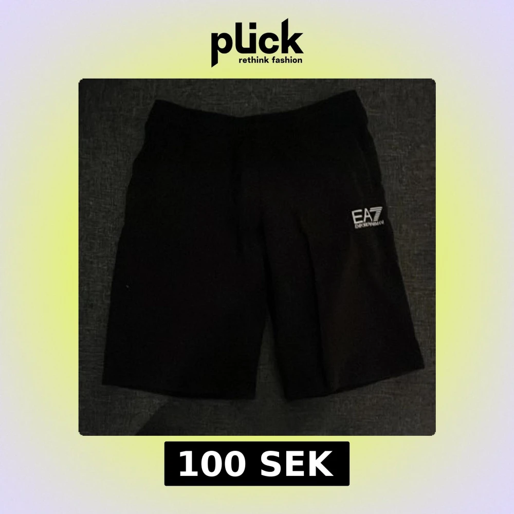 Svarta shorts från EA7 Emporio Armani med vit logga på vänster ben. Klassisk rak passform och elastisk midja för skön känsla. Perfekta för chill eller sport, med stilren design och mjukt material.