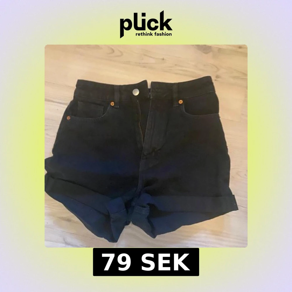 Snygga svarta högmidjade shorts från H&M med klassisk femficksdesign och uppvikta ben. Perfekta för en stilren look. Priset går att diskutera💗