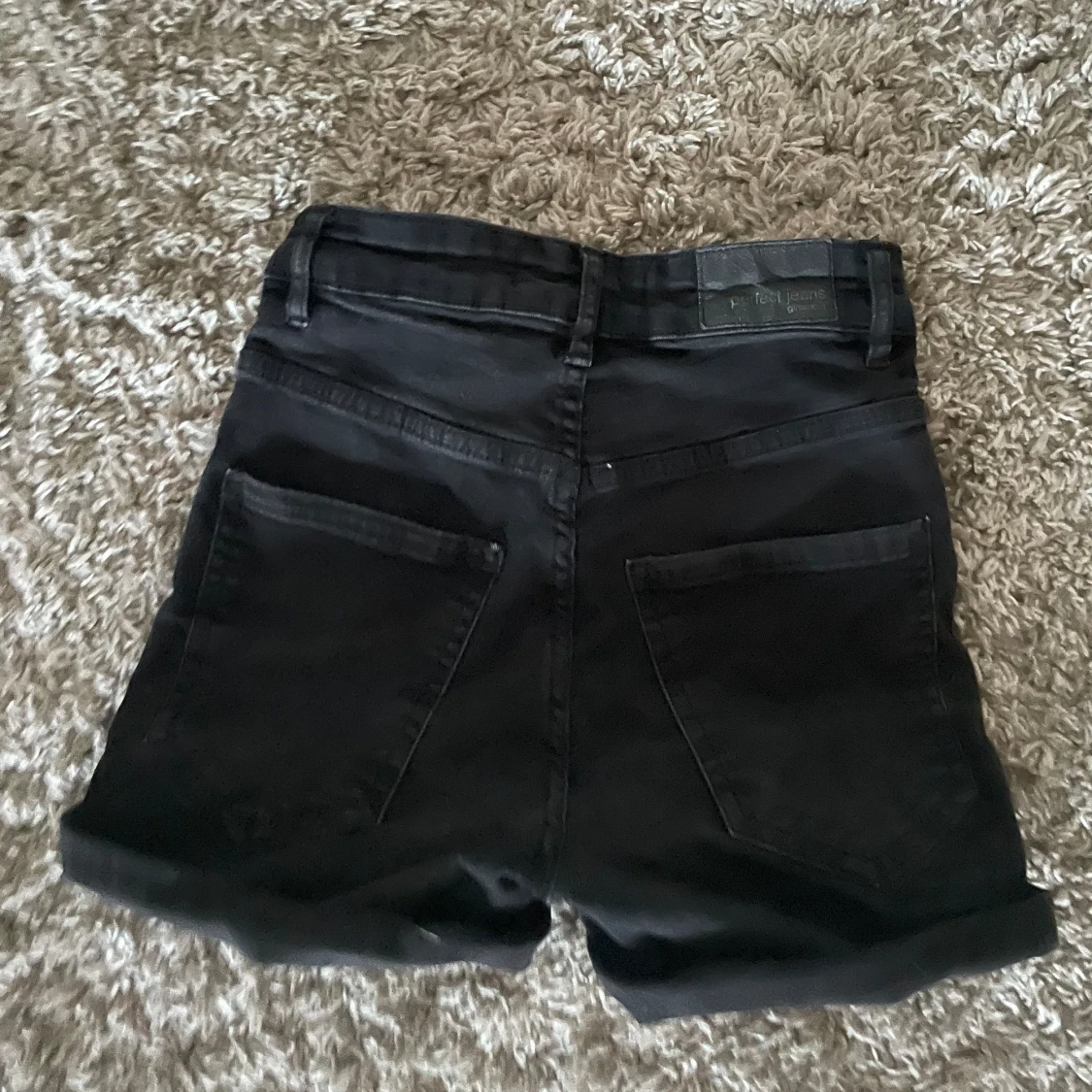 Svarta vikbara jeans shorts ”MOLLY” i storlek xs🖤 använt mycket förut, men inte längre, bra skick!