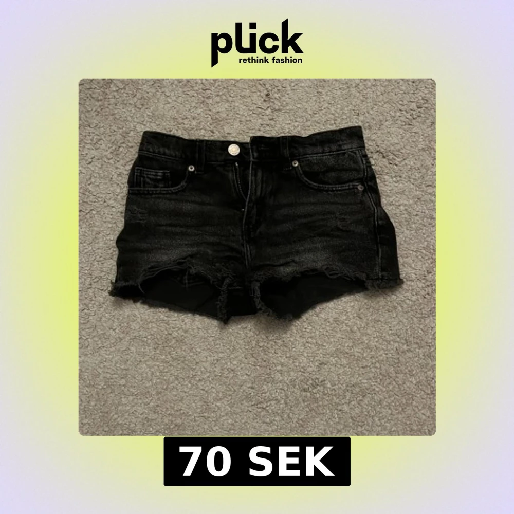 Snygga svarta jeansshorts med fransiga kanter och klassisk femficksdesign. Perfekta för en avslappnad stil. De har en knapp och dragkedja framtill.