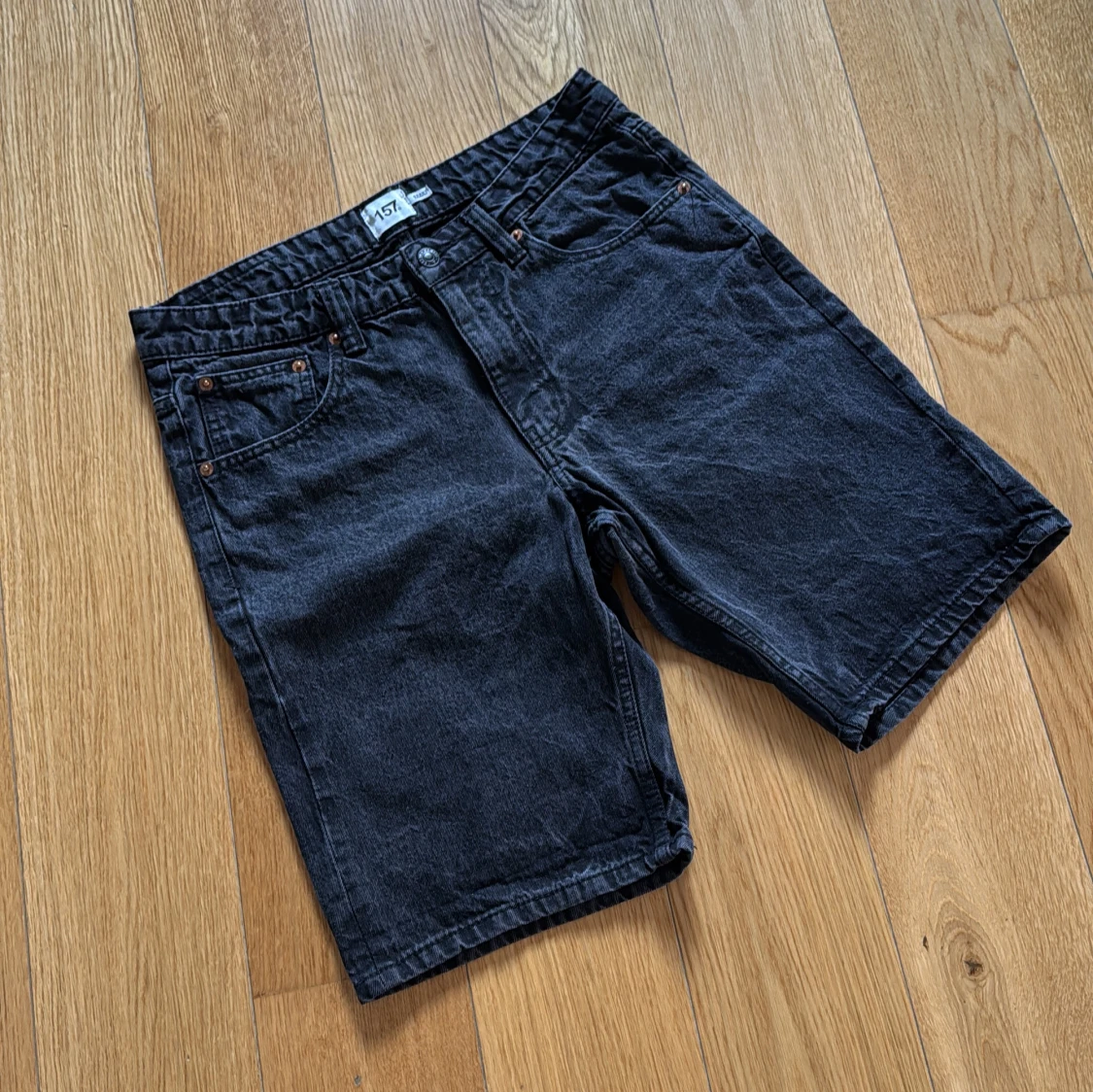 Klassiska svarta jeansshorts från 157 med fem fickor, bälteshällor och knappgylf. Modellen är rak och lite längre, perfekt för en chill och avslappnad stil. Materialet är robust denim som ger en cool vibe. Passar dig som gillar enkel och tidlös look.