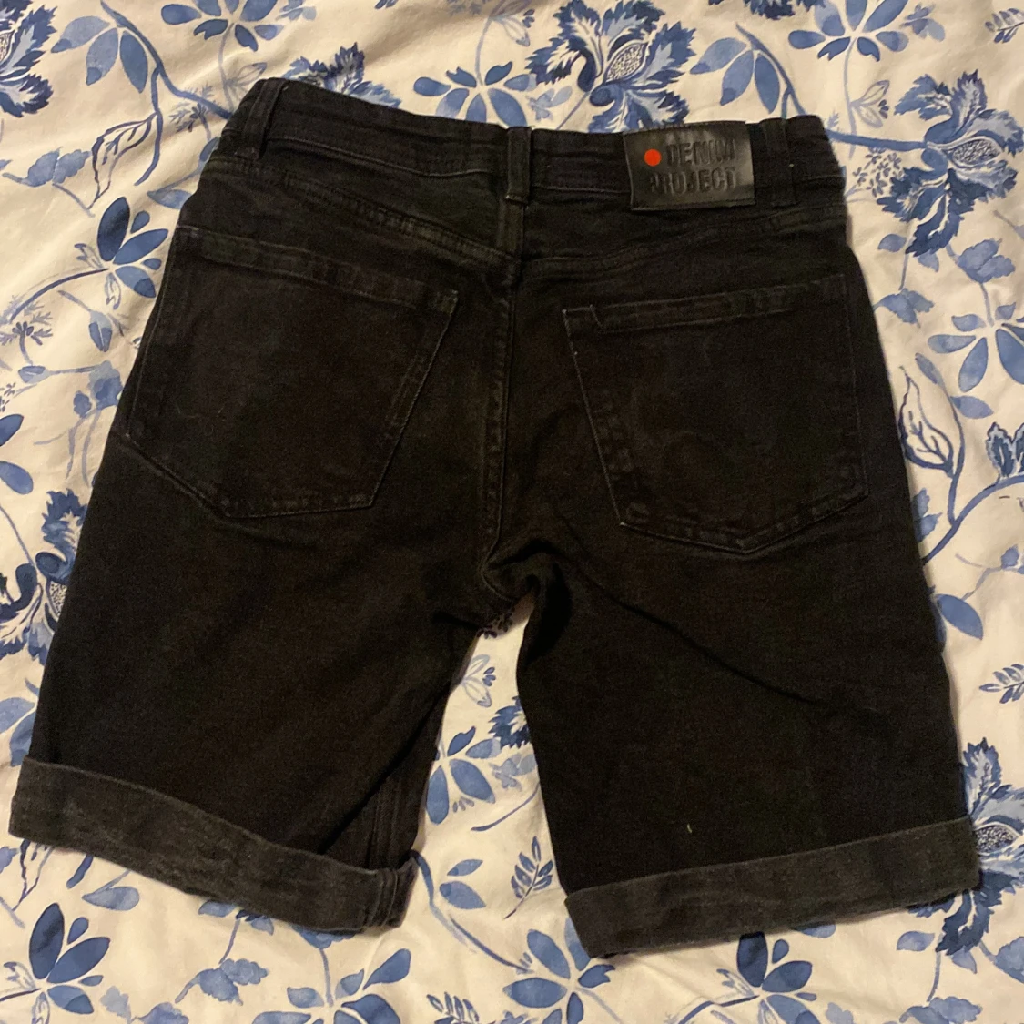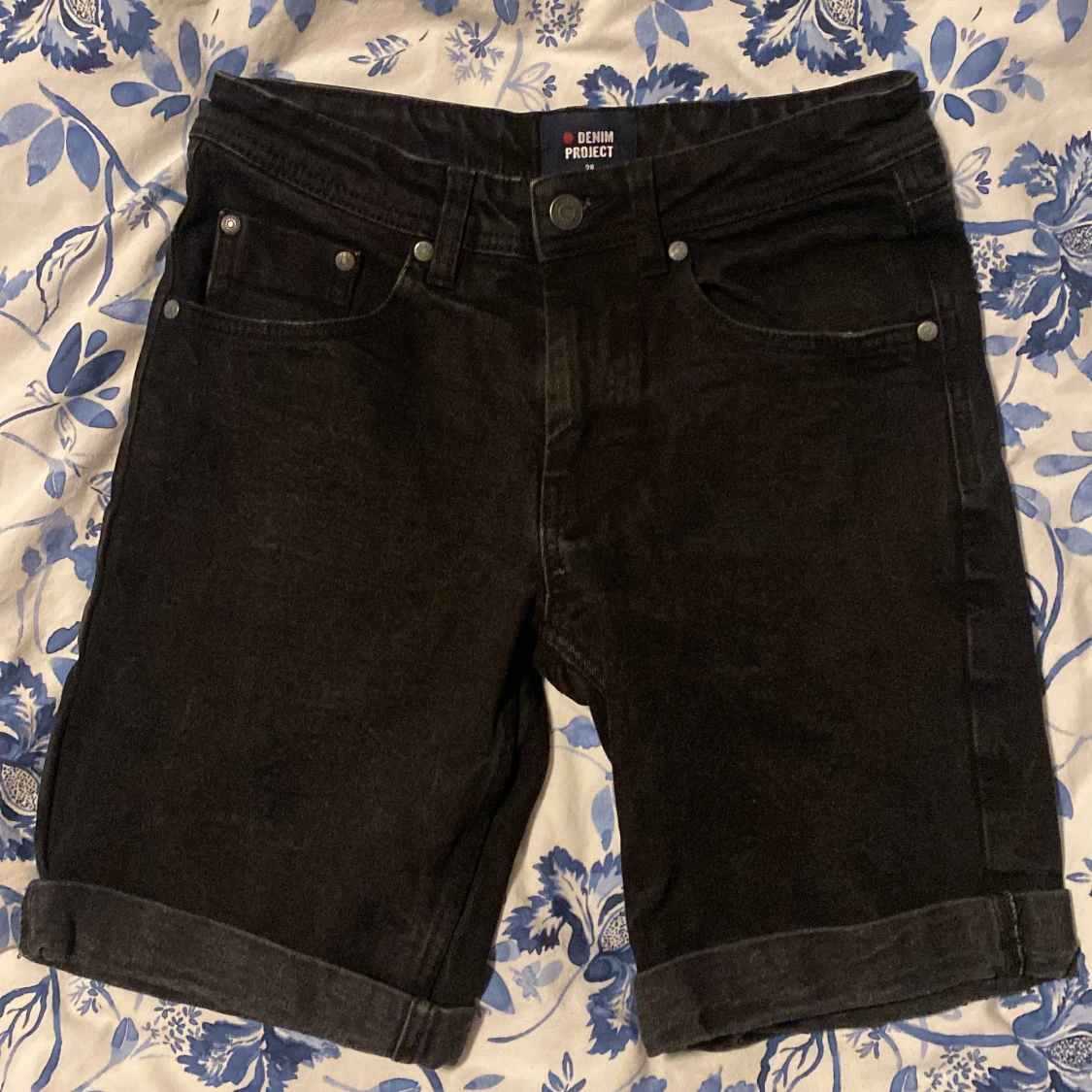 Snygga svarta jeansshorts från Denim Project med klassisk femficksdesign och uppvikta benslut. Perfekta för en avslappnad stil.