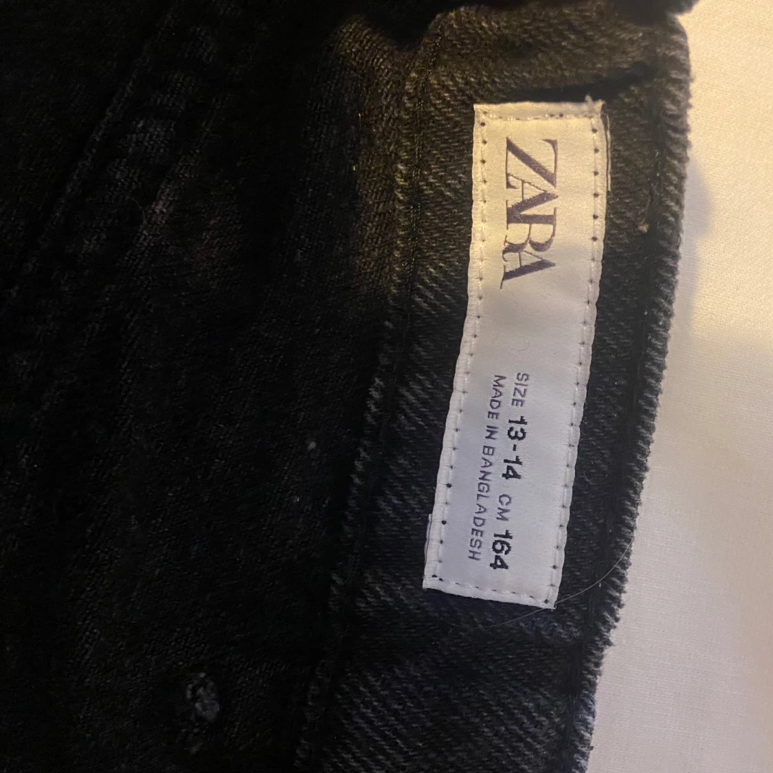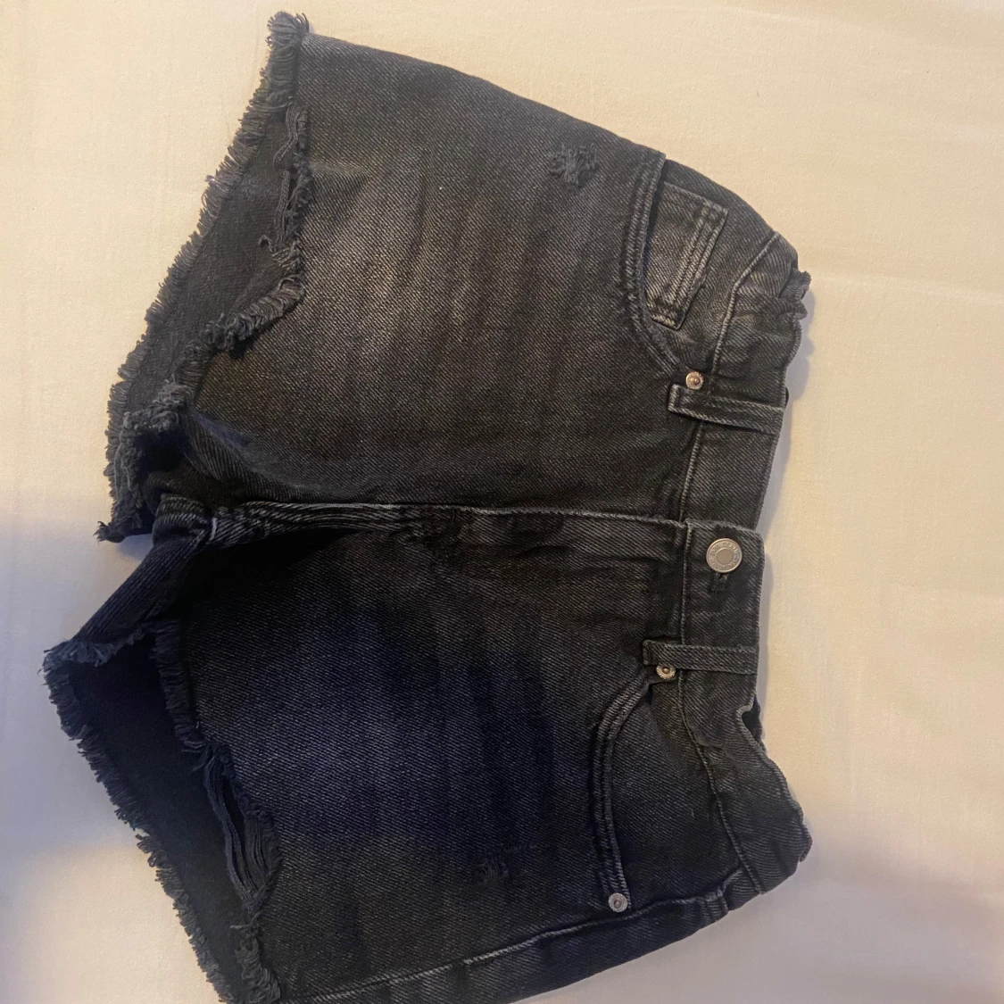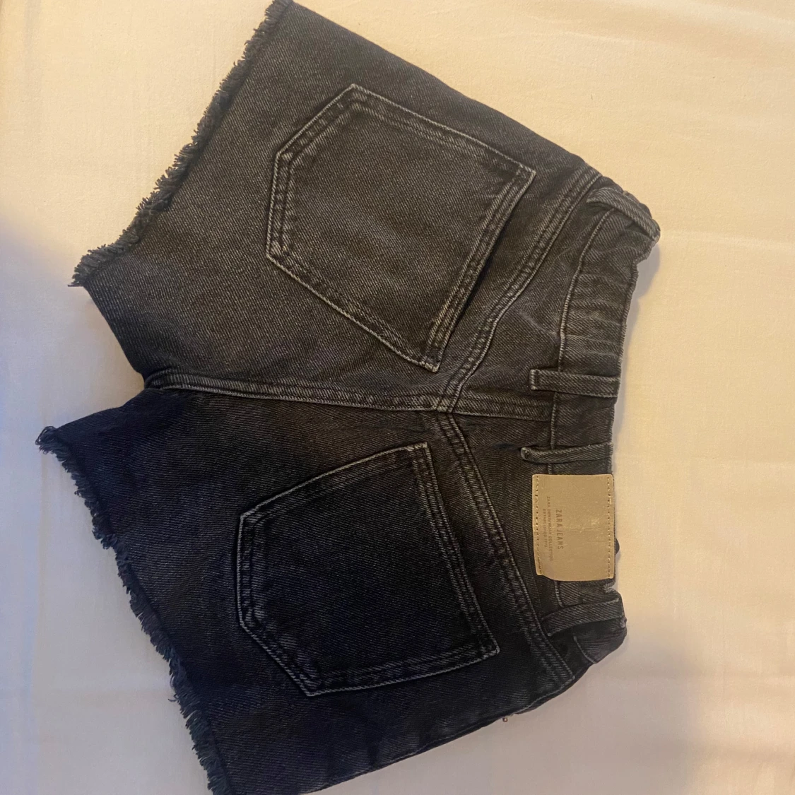 Snygga svarta jeansshorts från Zara med fransiga kanter. Perfekta för en avslappnad stil. De har en klassisk femficksdesign och knappgylf.
