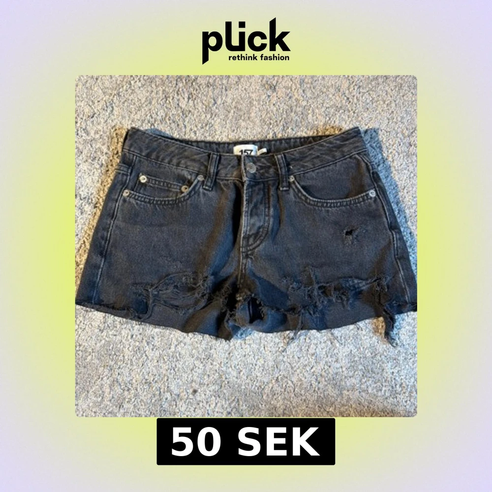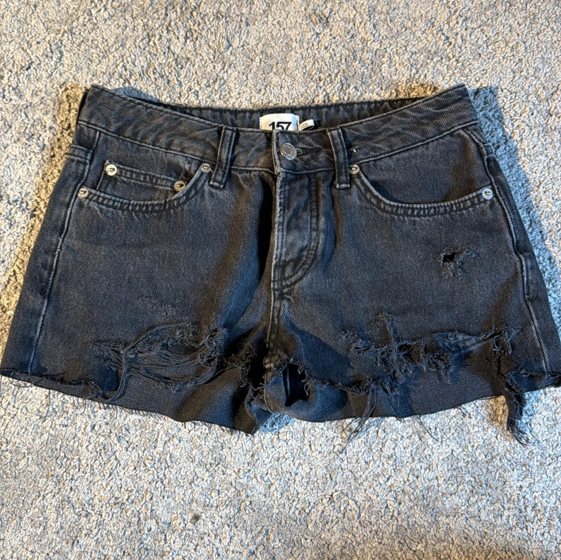 Snygga svarta jeansshorts från 157 med slitna detaljer framtill. Shortsen är avklippta icon jeans men också skitsnygga som shorts
