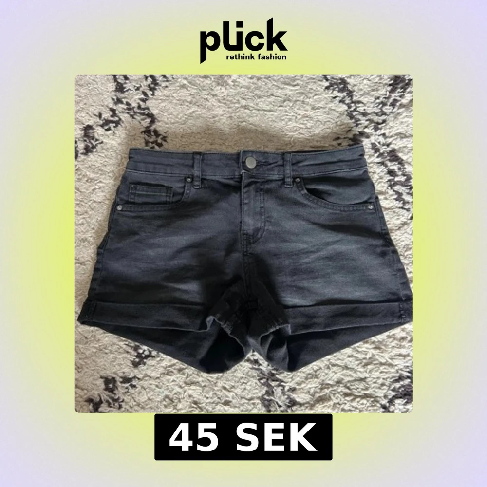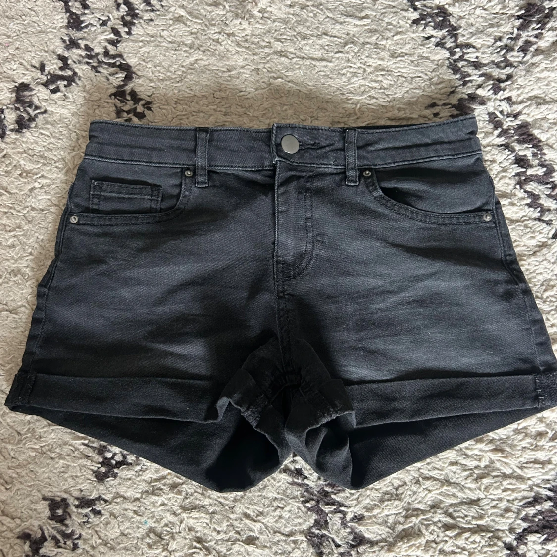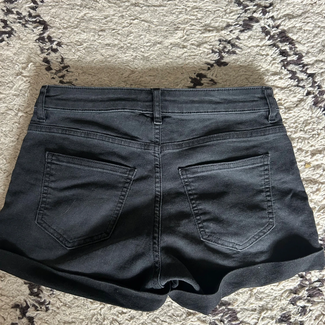 Svarta jeansshorts med klassisk femficksdesign och uppvikta benslut. Snygg modell med knapp och dragkedja framtill samt bälteshällor. Perfekta för en chill och stilren look under varma dagar.
