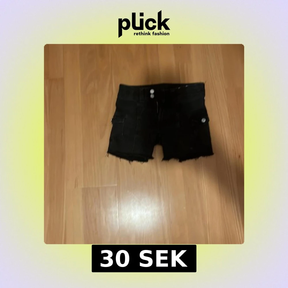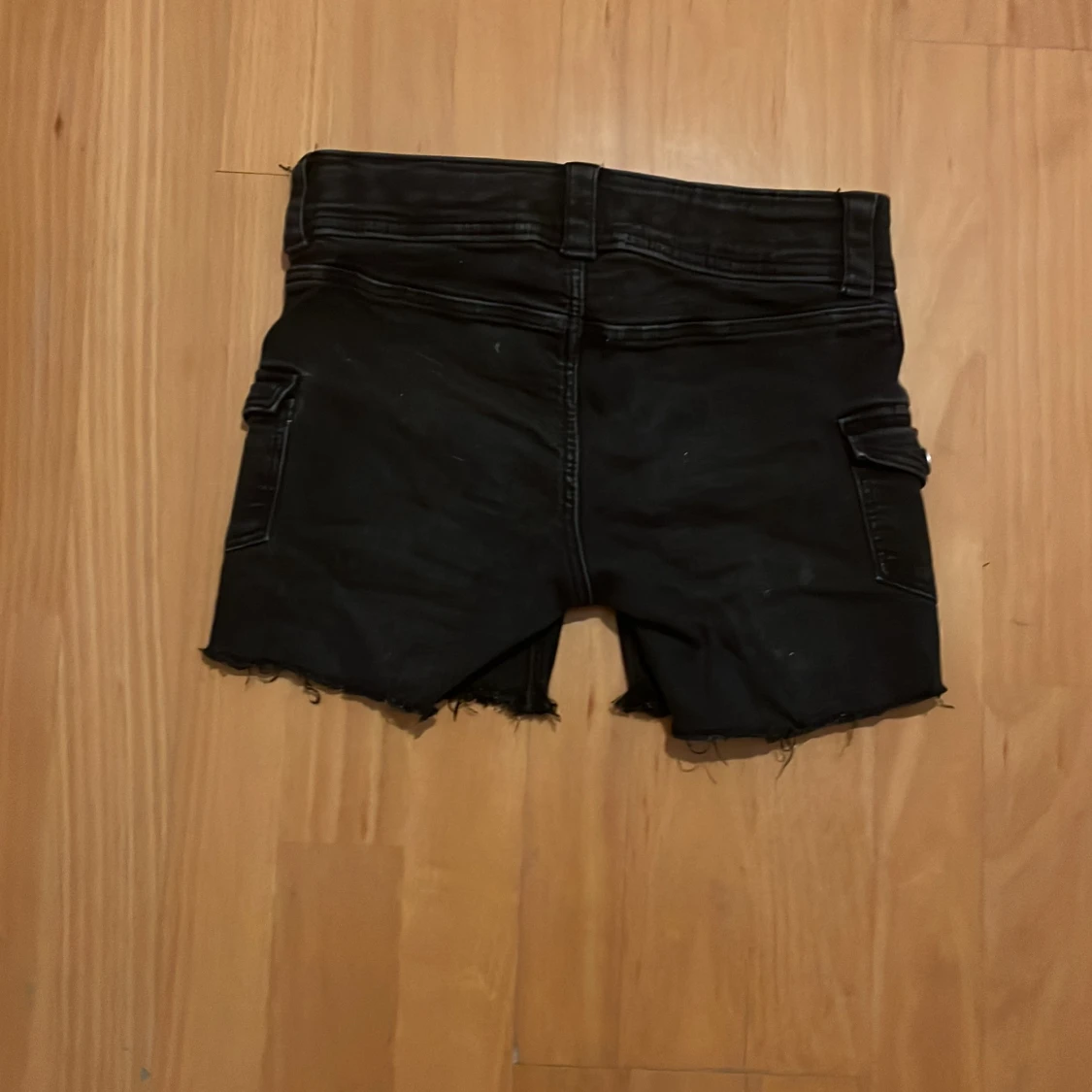 Säljer ett par svarta jeansshorts med fransiga kanter och knappar framtill. De var först ett par jeans men jag klippte de och de blev för korta för min smak