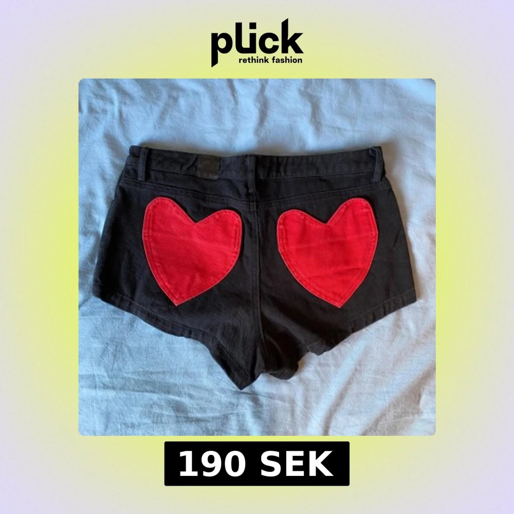 Jättefina unika svarta mini shorts från Lazy Oaf med hjärtan på bakfickorna. Köpta på Vinted men tyvärr för stora för mig som brukar ha på mig S ;-;