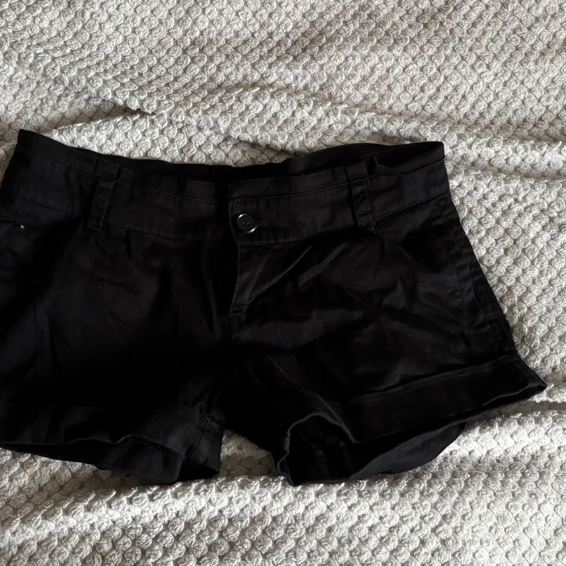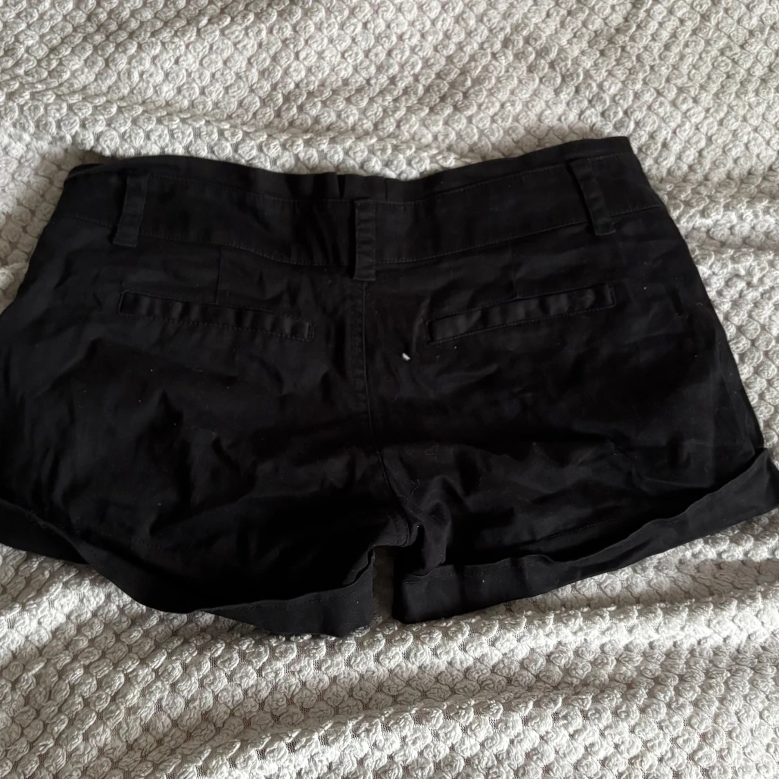Snygga svarta shorts med klassisk passform och uppvikta ben. De har hällor för bälte, knapp och dragkedja framtill samt fickor både fram och bak. Nya och oanvända