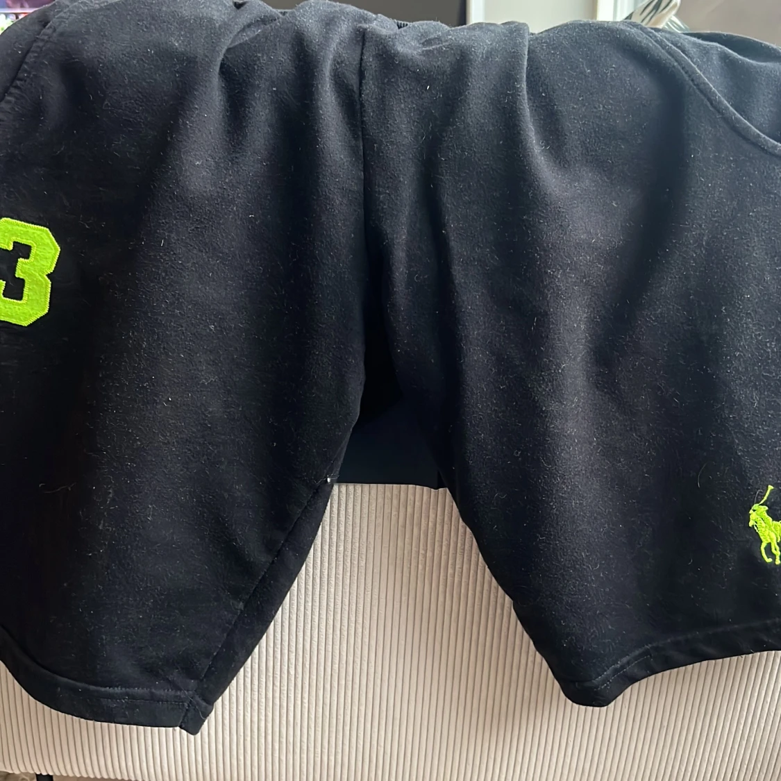 Snygga svarta shorts från Ralph Lauren med en grön broderad logga och siffran 3 på. Perfekt för en stilren och snygg still.