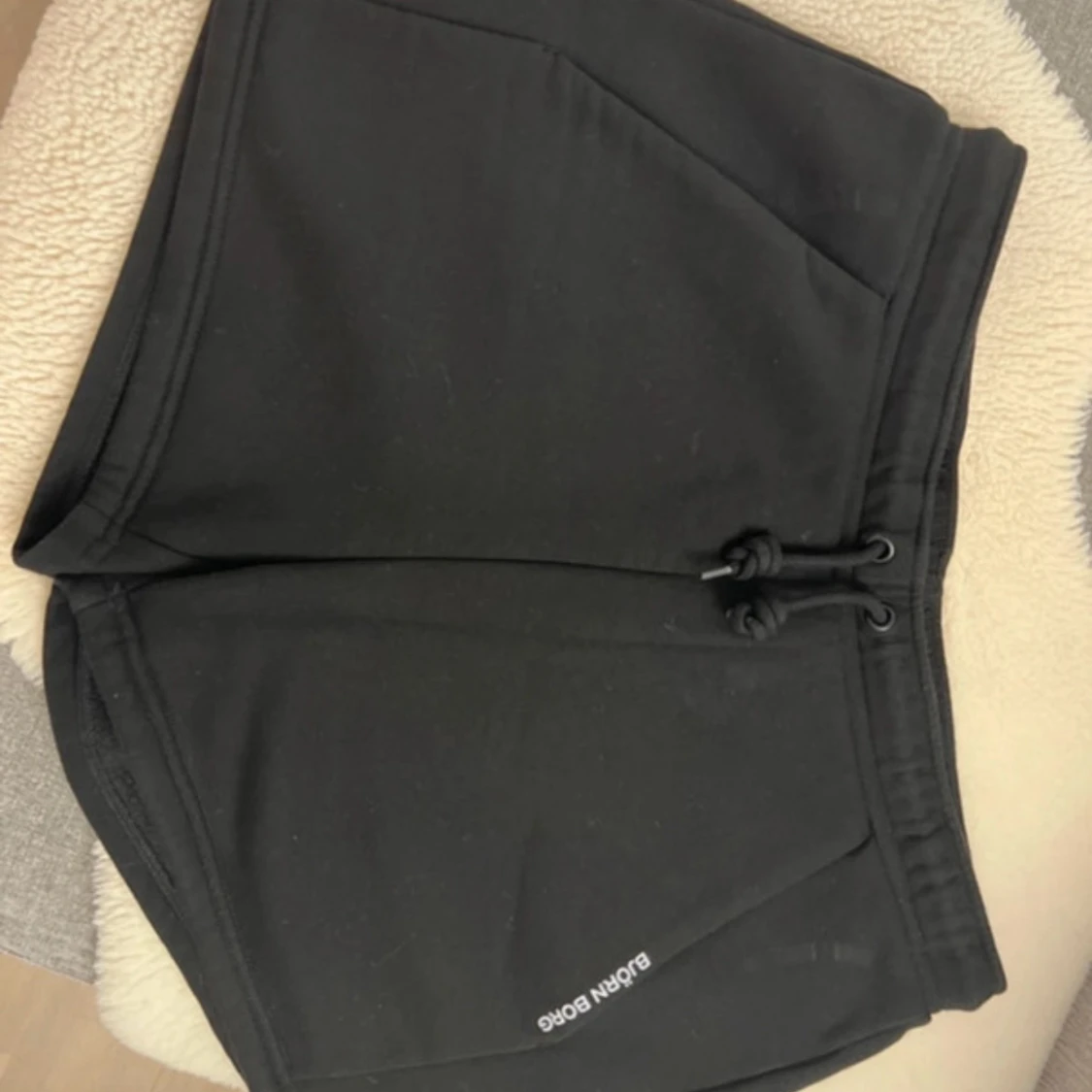 Svarta shorts från Björn Borg med snörning i midjan och två stora fickor framtill. Perfekta för träning eller chill, med en enkel och stilren design. Mjukt material som känns skönt mot huden och diskret logga på ena benet.