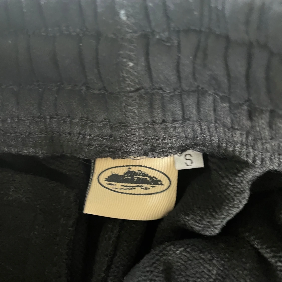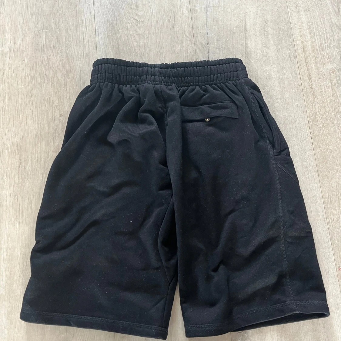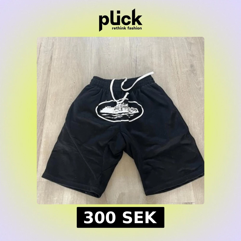 Svarta corteiz shorts med vitt tryck framtill och vit snörning i midjan. Modellen är loose fit med elastisk midja och bakficka med knapp. Perfekta för chill dagar eller träning. Materialet känns som mjuk bomull eller syntet.