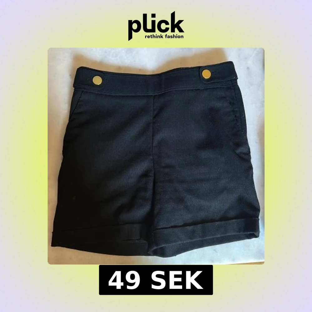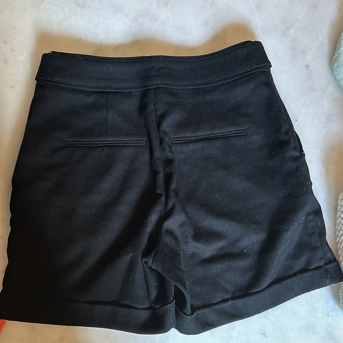 Svarta shorts från H&M i storlek 34 med snygga guldknappar framtill. De har hög midja, uppvikta benslut och diskreta bakfickor.