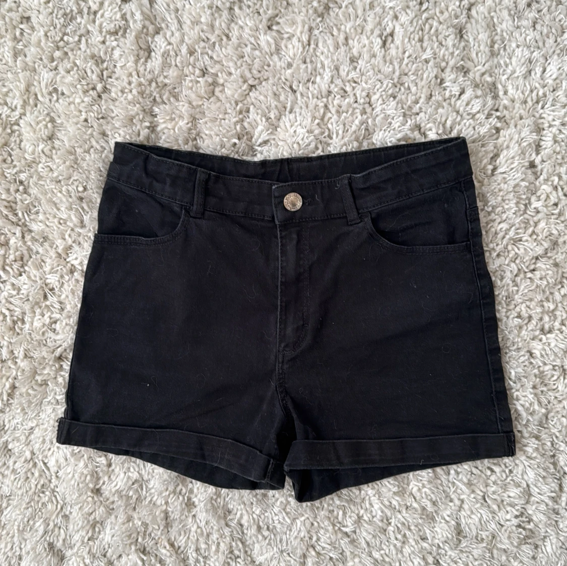 Snygga svarta shorts från H&M. Passar inte mig längre och de har blivit tvättde ett par gånger därför har de säkert krymt. Är använda men är i bra skick ändå. Skriv om ni har nån fråga!😇