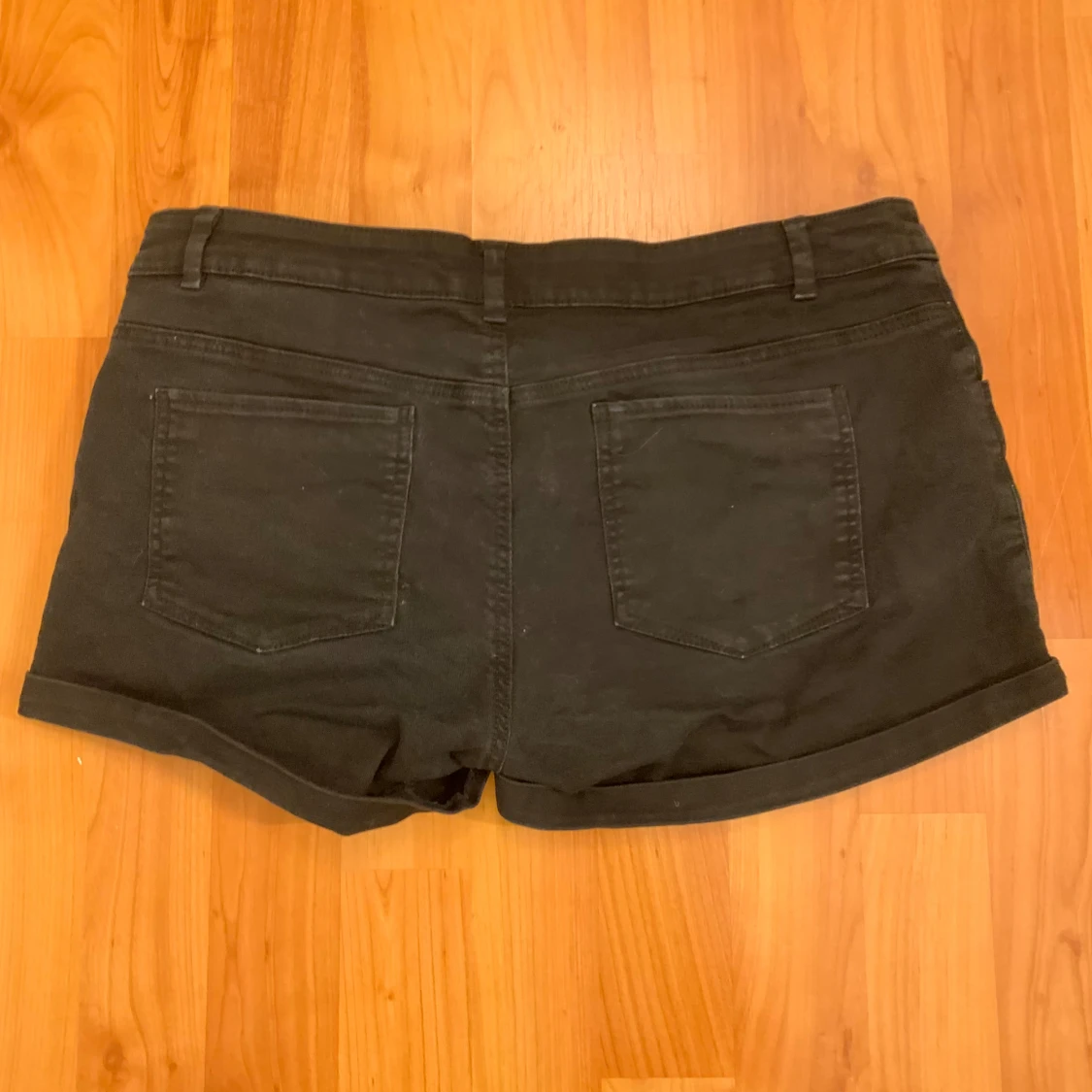 Snygga Lågmidjade svarta shorts från H&M med knapp och dragkedja framtill. De har två fickor fram och två bak, vilket ger en klassisk look. Perfekta för en avslappnad stil. Storlek 40.