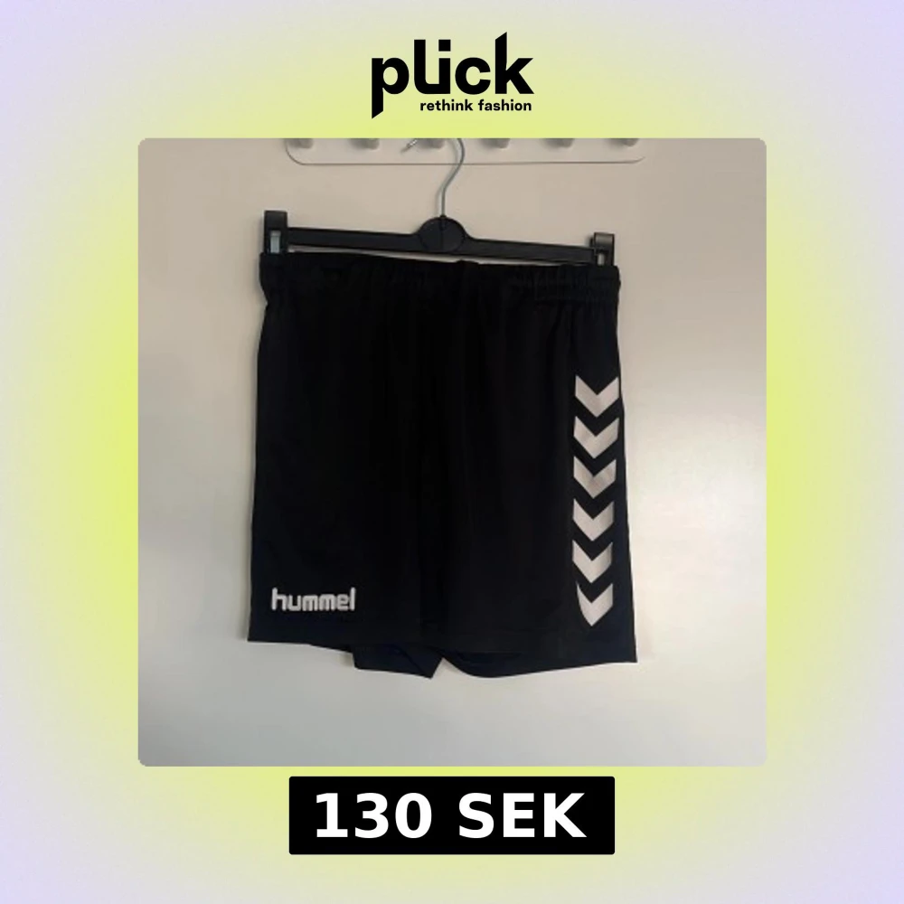 Snygga svarta shorts från Hummel med klassiska vita pilar på sidan. Perfekta för sport och träning. Elastisk midja för bekväm passform.