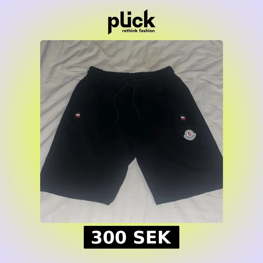 Snygga svarta shorts från Moncler med elastisk midja och snörning. Shortsen har Moncler-logga och små detaljer i rött, vitt och blått. Perfekta för en stilren look.