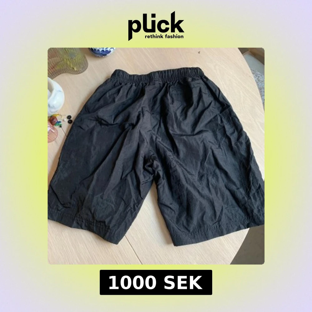 Säljer ett par svarta shorts från Stone Island med broderad logga på benet. Shortsen har elastisk midja med snörning och dragkedjefickor samt bakficka . Perfekta för sommaren och har en clean, stilren look.