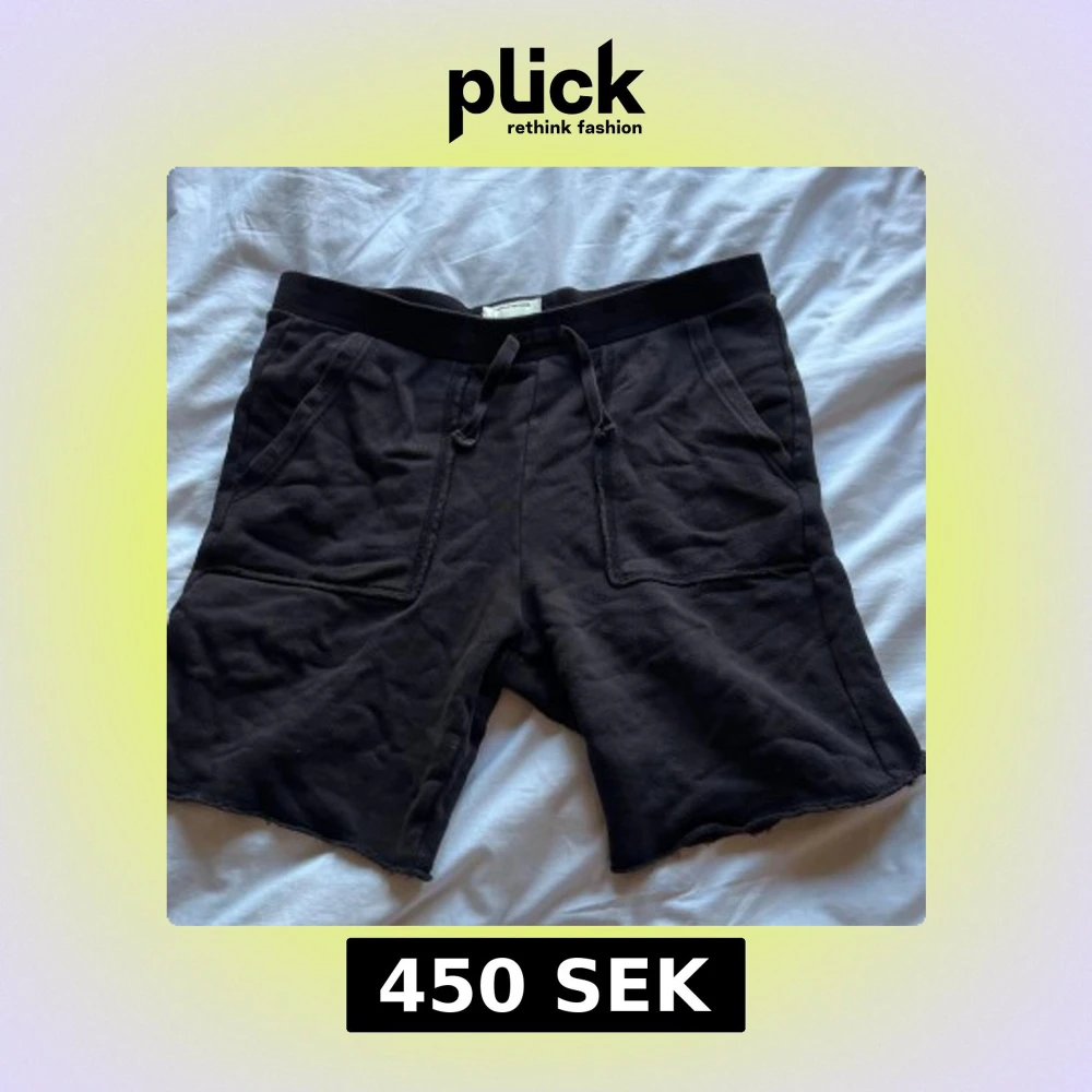 Svarta shorts från Zadig & Voltaire med bred resår i midjan och snörning framtill. De har två stora fickor fram och en bakficka med coolt tryck. Materialet är mjukt och känns som bomull, perfekt för chill dagar. Rå kant nedtill ger en avslappnad vibe.