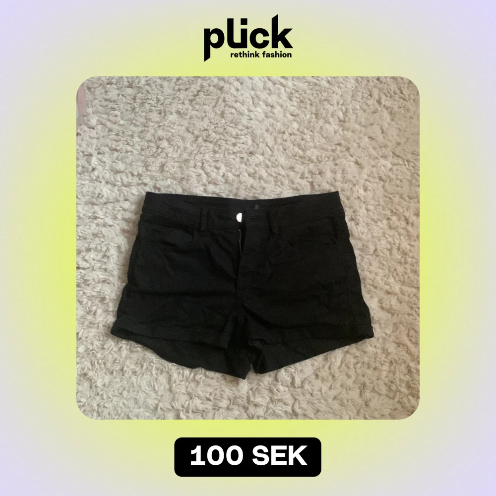 Säljer ett par svarta jeans shorts. De är mid waist med en blixtlås och knapp där fram. Passar till det mesta och är superbekväma! Har använts ett par gånger men är i mycket bra skick! 💖💖