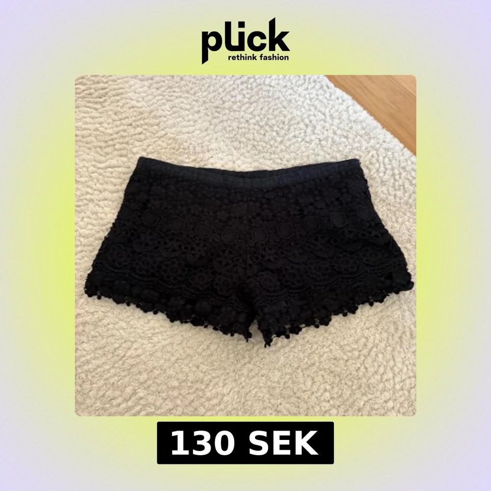 Supersnygga svarta shorts med detaljerad spets och blommigt mönster. De har en midwaist passform och är perfekta för sommaren. Shortsen har en unik kant med volang och broderade blommor som ger en extra touch till outfiten.