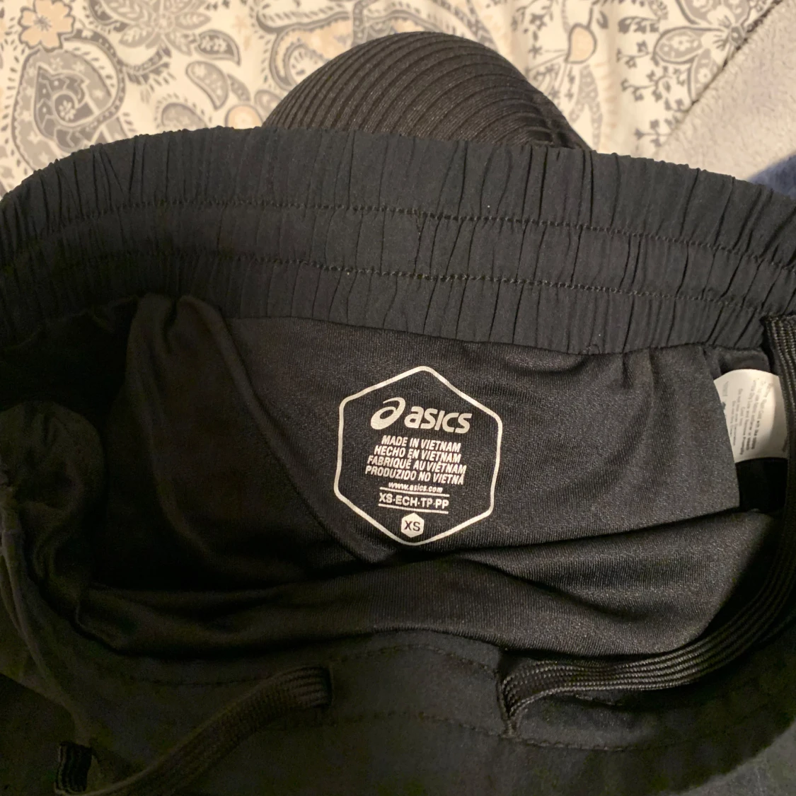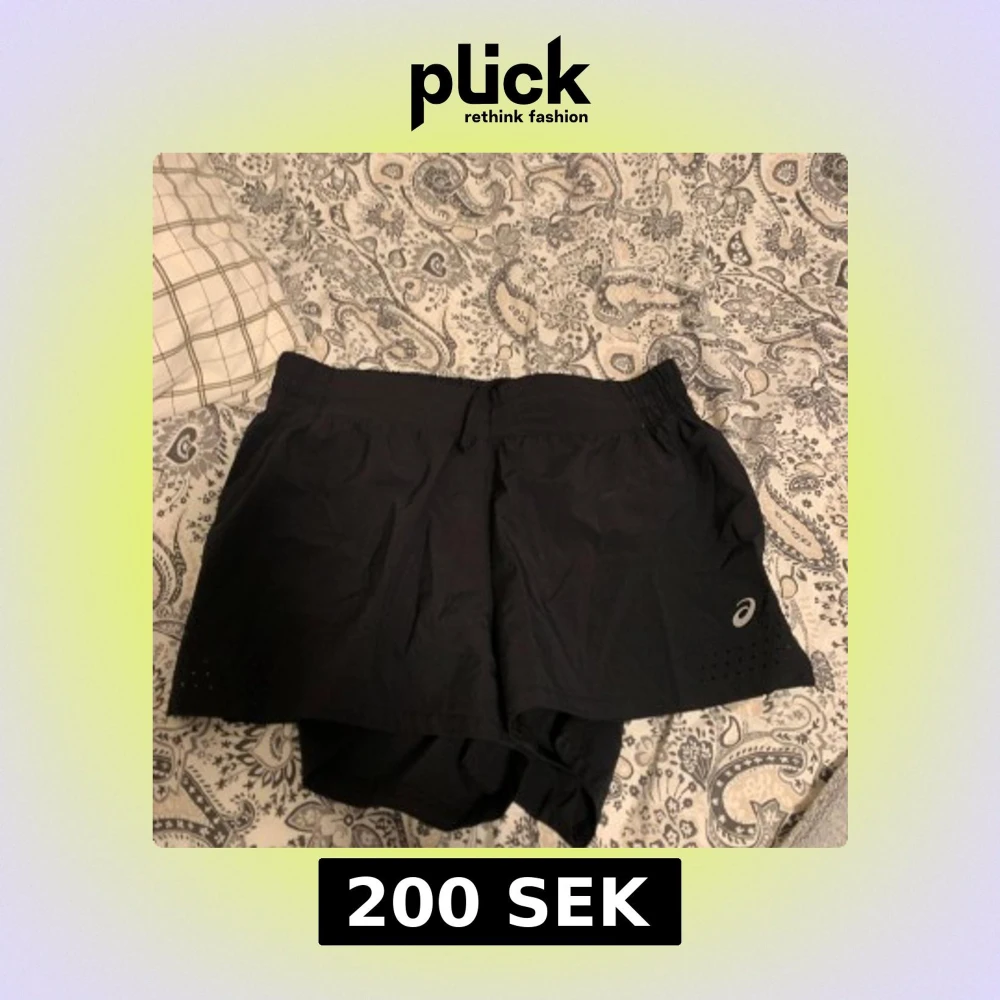 Svarta träningsshorts från Asics i storlek XS. De har elastisk midja med snörning, reflekterande detaljer och innerbyxa. Perfekta för löpning eller gym, med lätt och snabbtorkande material. Klassisk sportig look med Asics-logga på benet och en mindre bakficka. Köpte i USA. Köpta för runt 400kr använd 1 gång. Mitt pris 200kr