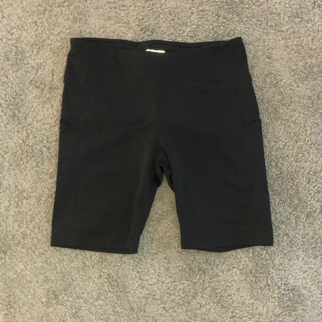 Snygga svarta träningsshorts från Energetics i storlek L. Perfekta för gymmet eller löprundan med en bekväm passform och elastiskt material. De har en hög midja för extra stöd och komfort. Shortsen är en blandning mellan cykelbyxor och vanliga shorts och har därför enligt mig en perfekt längd!! Säljer för att de är för stora för mig🥺❤️