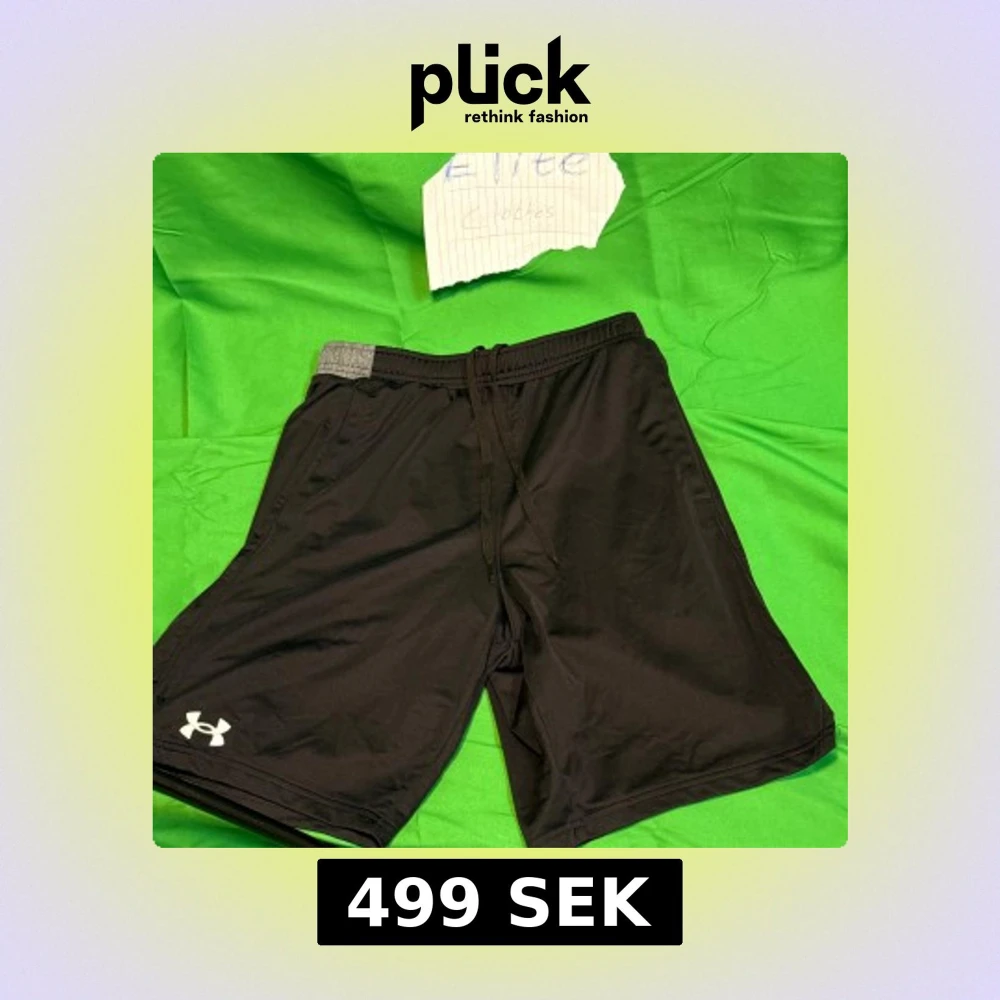 Svarta träningsshorts från Under Armour med grå resår i midjan och snörning framtill. Shortsen har en loose passform och är tillverkade i ett lätt syntetmaterial som andas. Perfekta för gymmet eller löprundan, med diskret logga på benet.Liknande modell som originalet!