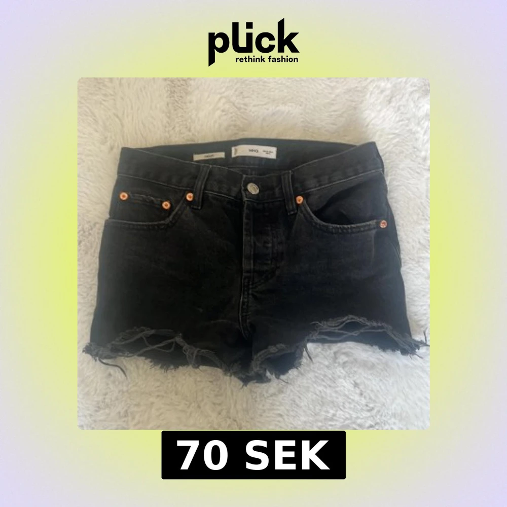 Svarta jeansshorts från MNG och klassisk femficksdesign. Modellen är midwaist och har snygga kopparfärgade nitar vid fickorna. Perfekta för en chill sommarlook med lite edge.