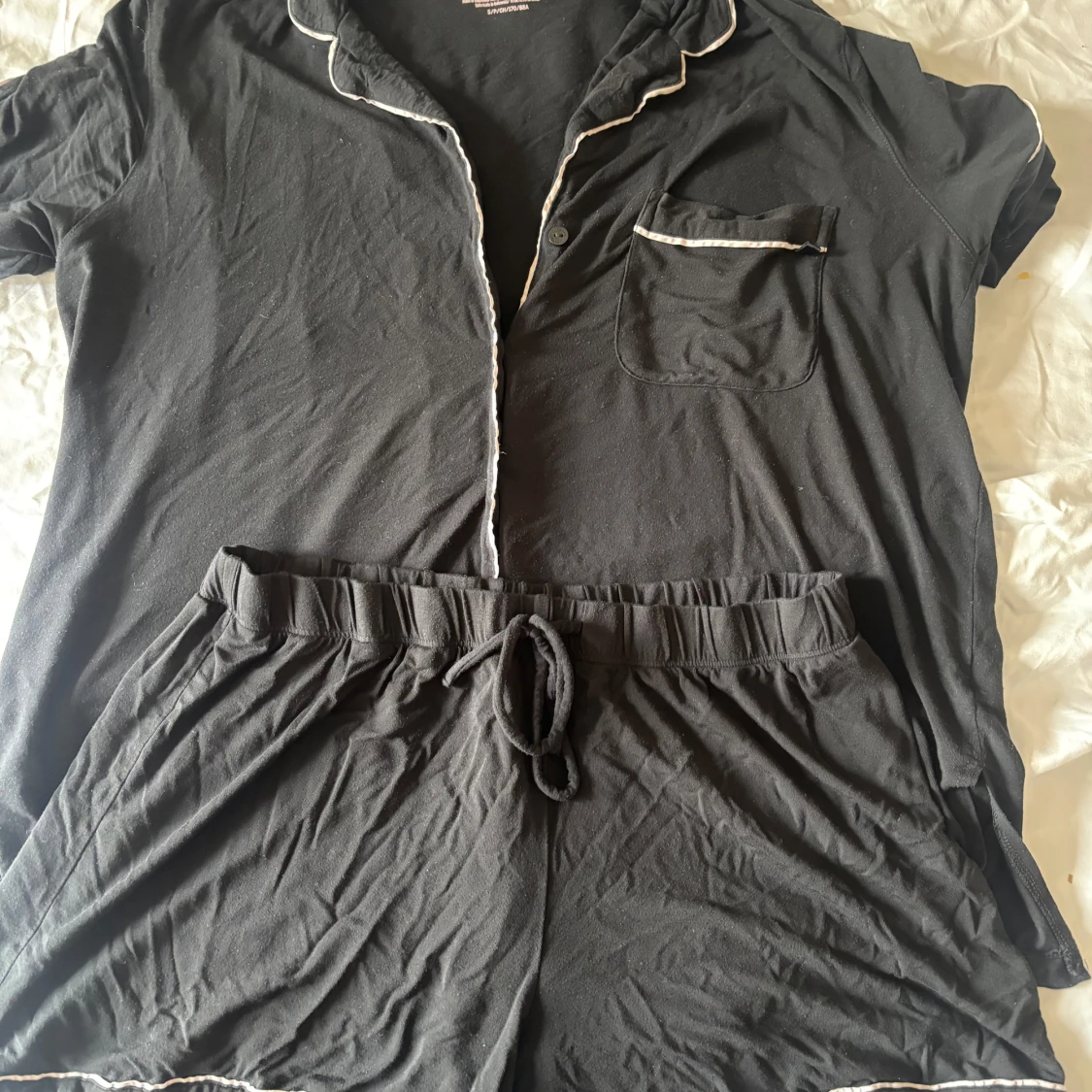 Svart mjukat set från Victoria's Secret med Rosa kant längs sidorna. Materialet är bomull och passformen är loose. Perfekta för chill hemma eller mysiga kvällar. Ny pris 750kr