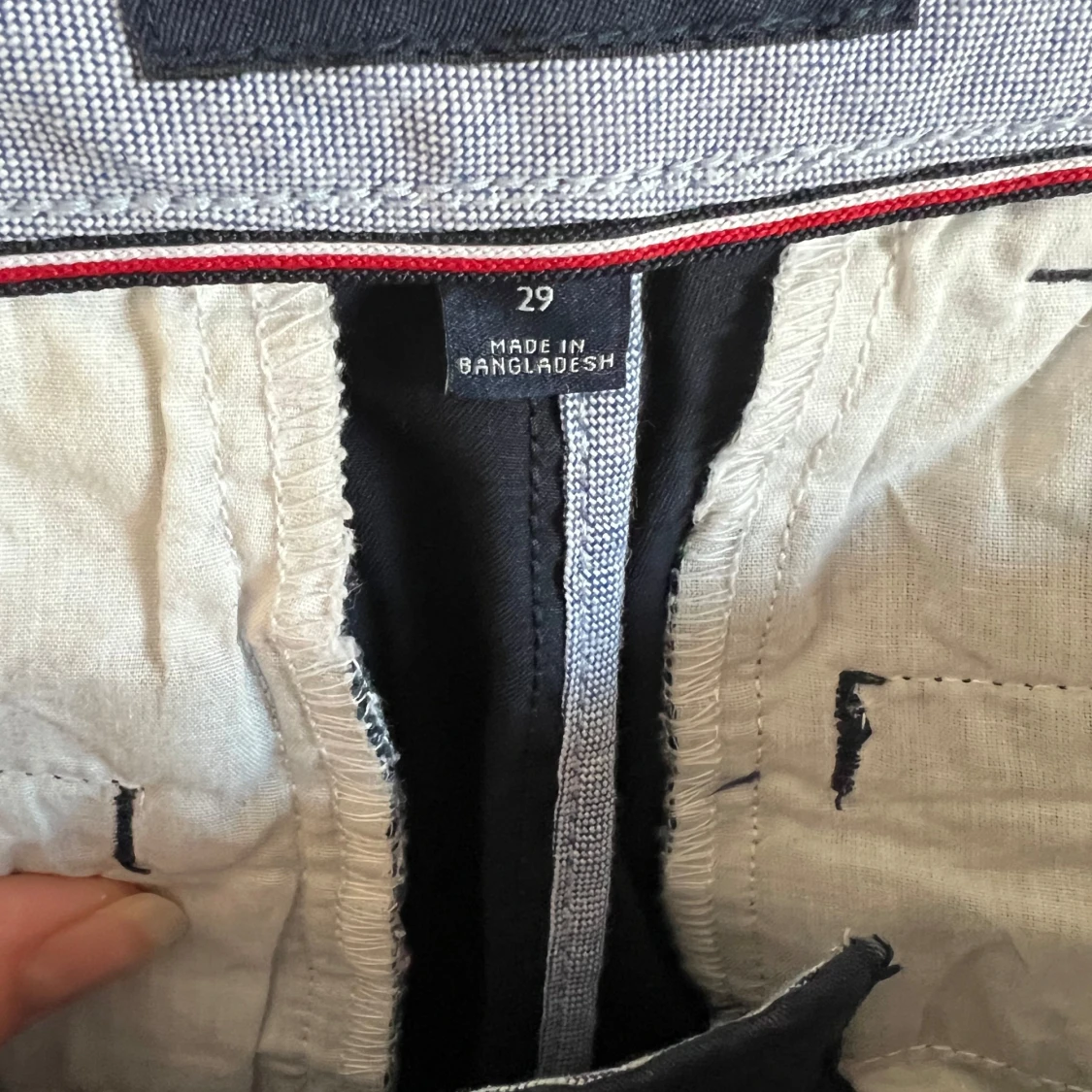 Snygga mörkblå shorts från Tommy Hilfiger med klassisk design. De har en knapp och dragkedja framtill samt sidofickor. Perfekta för en stilren look.