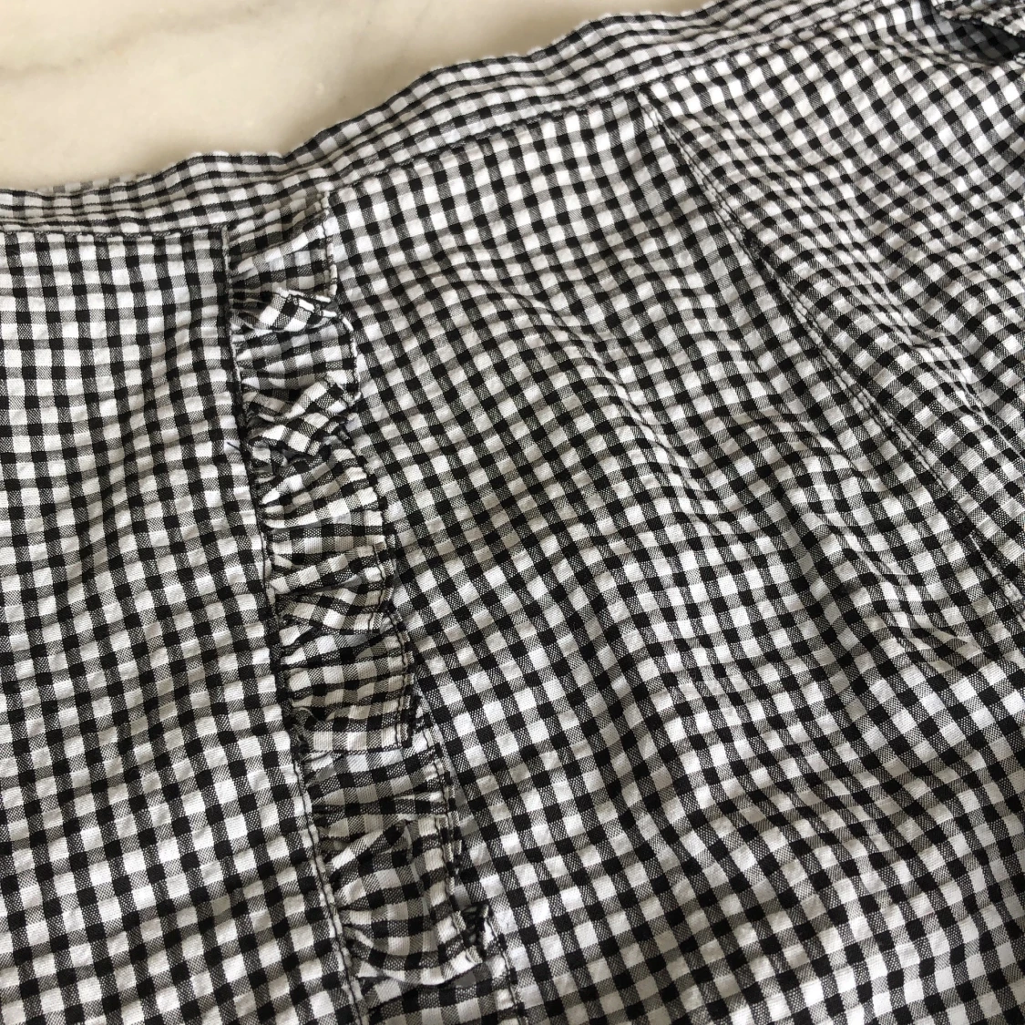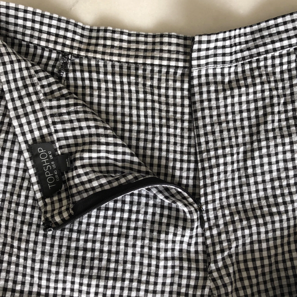 Rutiga shorts med volanger från Topshop. Små i storleken. Sparsamt använda. Priset är inräknat i priset!