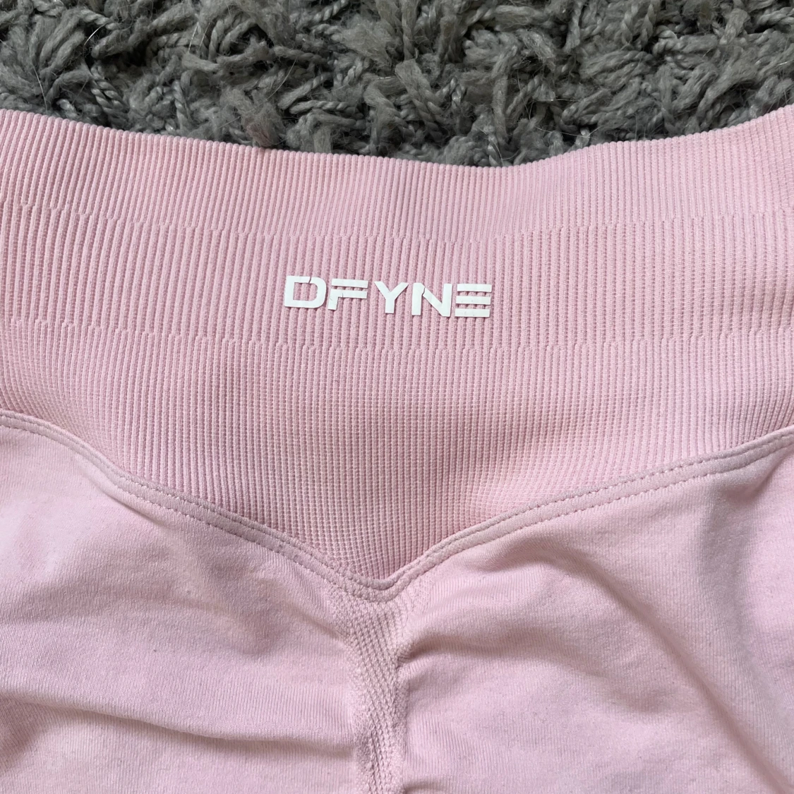 Säljer ett par ljusrosa träningsshorts. Köpte på vinted så kan inte garantera att det är från DFYNE, kan vara supe också. Men de är stretchiga och perfekta för träning. Materialet är mjukt och följsamt, och är i storlek XS/S