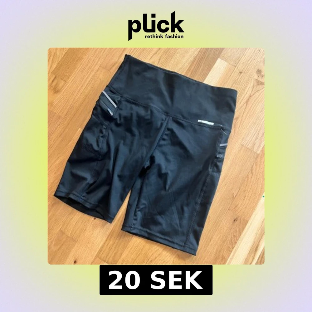 Svarta träningstights shorts med hög midja och praktiska fickor på sidorna, varav en med dragkedja. Perfekta för gymmet eller löprundan.