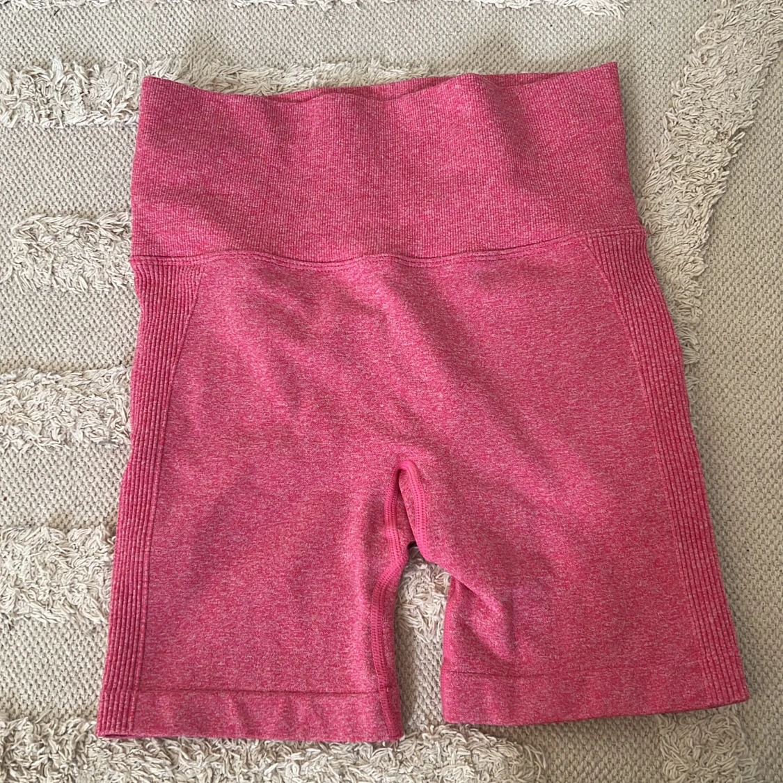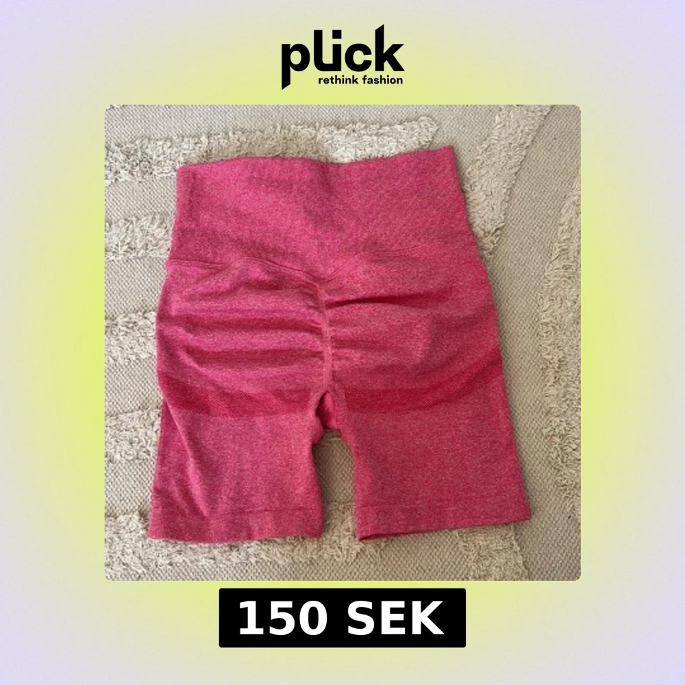 Snygga rosa seamless shorts med hög midja och ribbade detaljer. Materialet är stretchigt och består av polyamid, polyester och elastan, vilket gör dem perfekta för träning. De har scrunch-effekt bak för extra shaping och sitter tight mot kroppen.