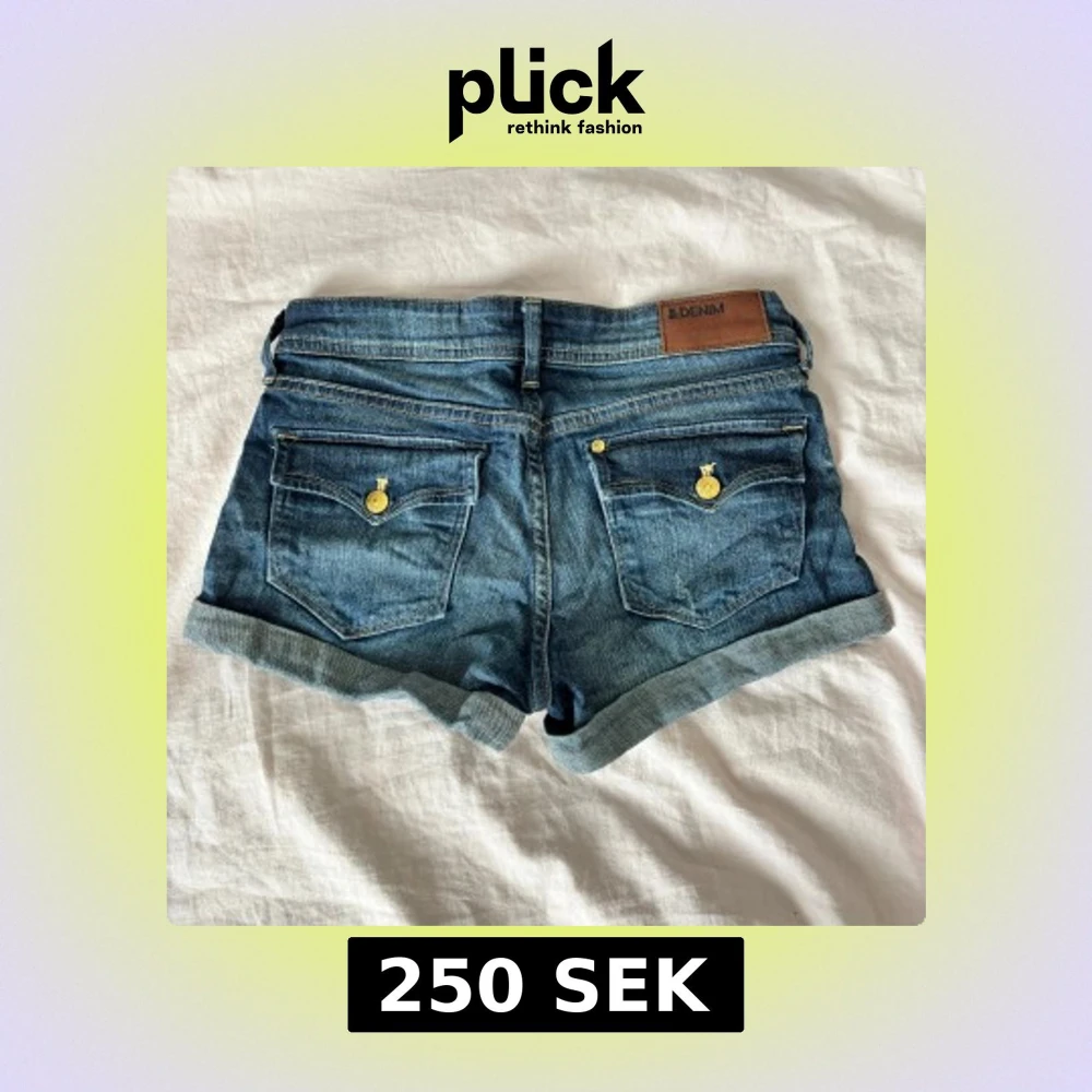 Snygga blå jeansshorts från &Denim med uppvikta benslut och klassiska guldiga knappar. Shortsen har fem fickor och bälteshällor, perfekt för en chill sommarlook. Tidlös denim med coola detaljer och skön passform.