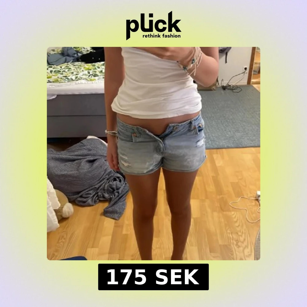 Snygga lågmidjafe blå jeansshorts från Levi's med slitna detaljer, tyvärr för små för mig, bilderna är lånade av tjejen jag köpte av. Midjemått rakt över ca 36cm☺️☺️