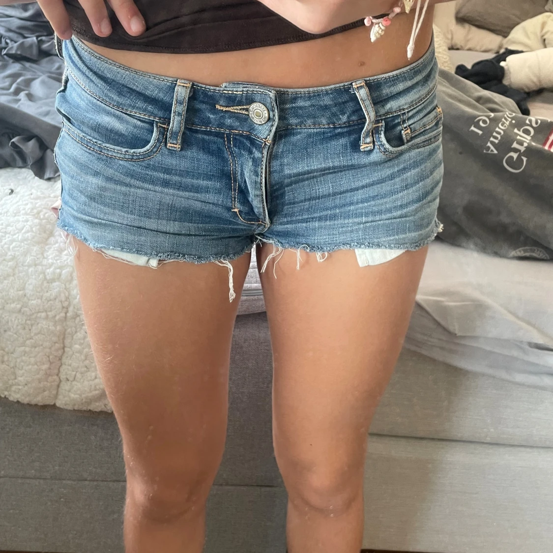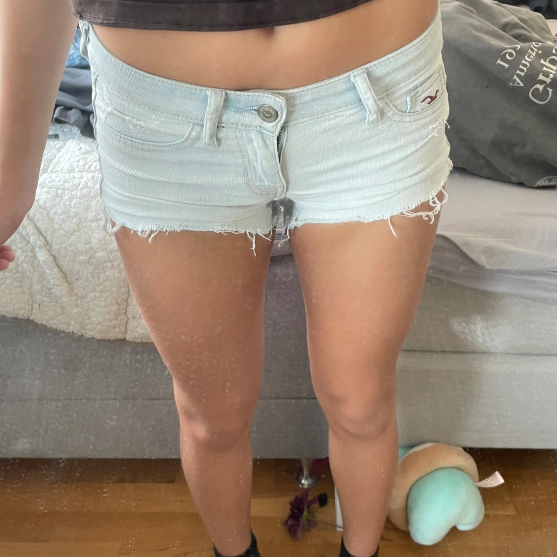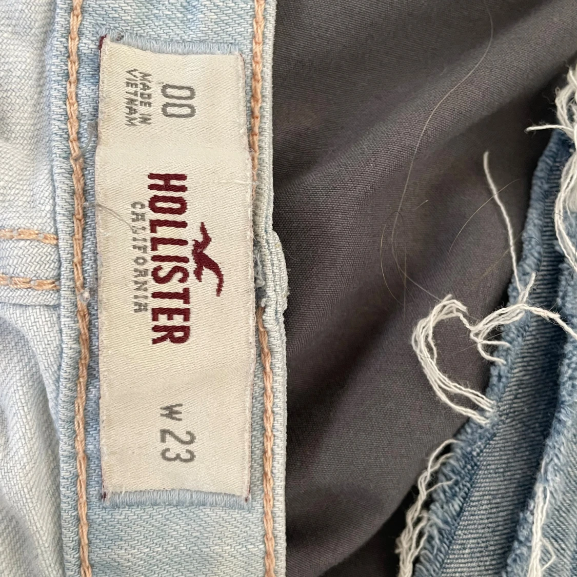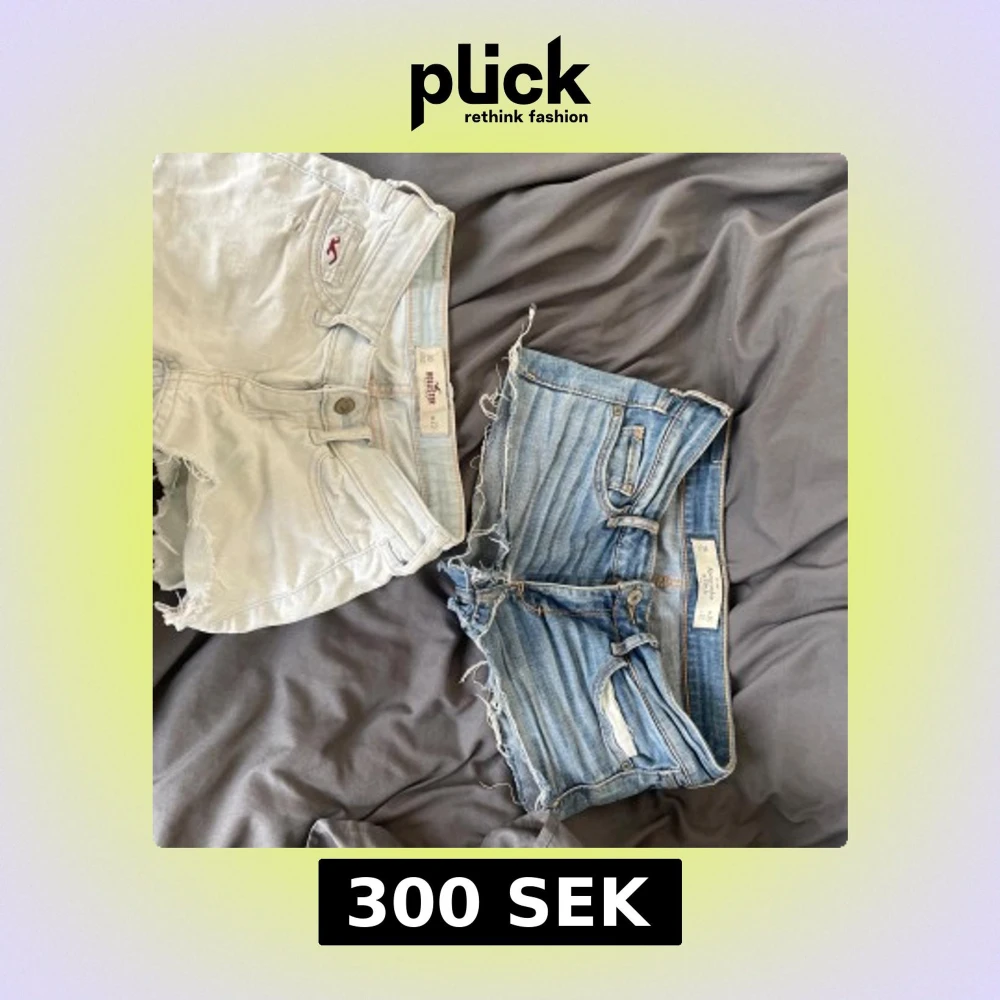 Säljer två par snygga jeansshorts! Ett par ljusblå från Hollister och ett par klassiskt blå från Abercrombie & Fitch. Båda har råa, fransiga kanter och femficksmodell. Perfekta till sommaren och riktigt sköna att bära. Sitter lågt på höften och har en avslappnad vibe.