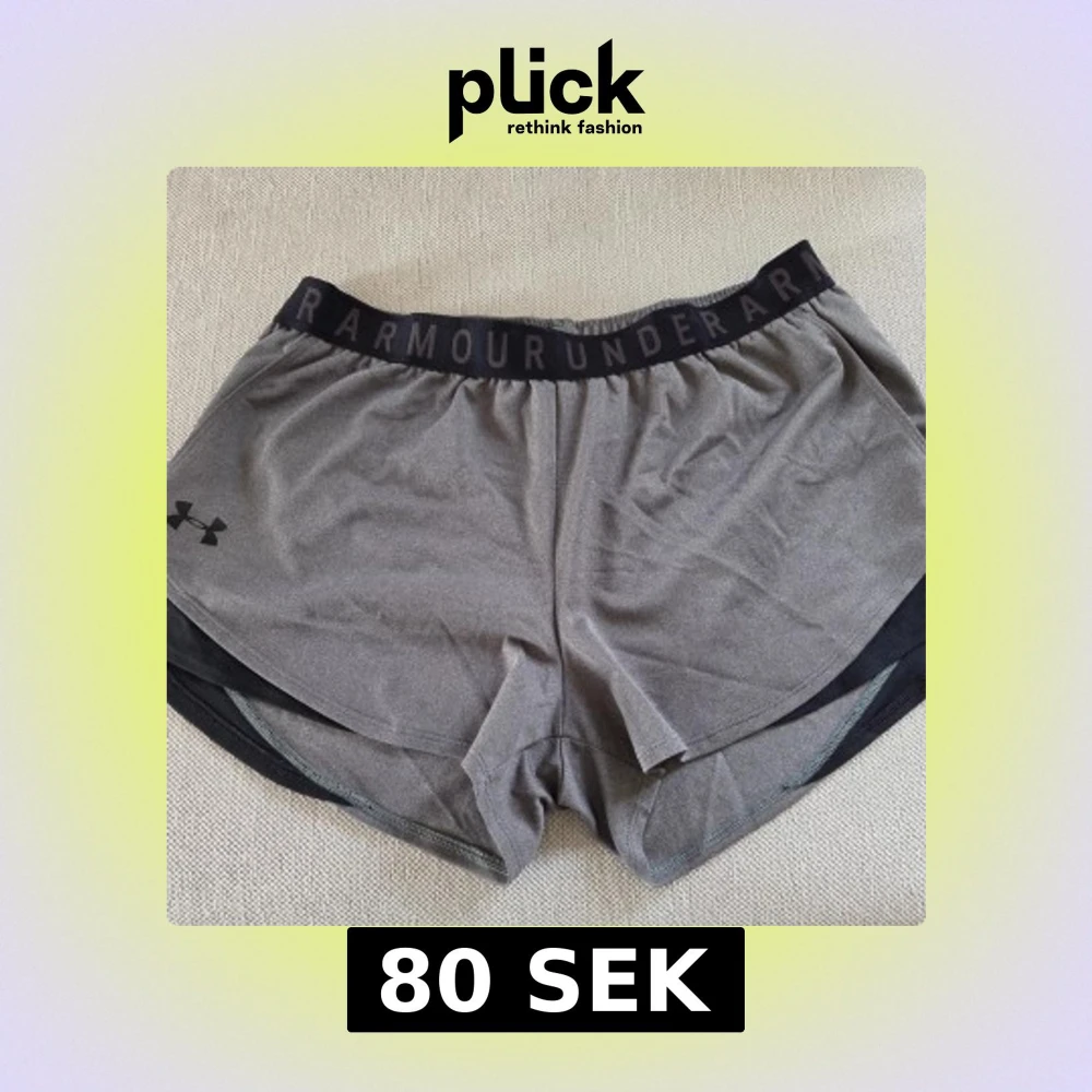 Säljer ett par grå träningsshorts från Under Armour med svart resår i midjan där loggan syns tydligt samt fickor. Shortsen är i loose fit och tillverkade i ett lätt syntetmaterial, perfekta för träning. Klassisk sportig look med diskret logga på benet.
