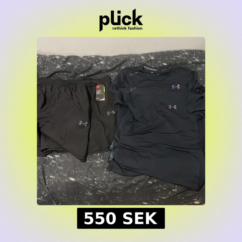 Säljer ett par svarta träningsshorts från Under Armour i storlek M. Shortsen har elastisk midja med snörning och en diskret logga i regnbågsfärger på ena benet. Tillverkade i ett lätt och snabbtorkande syntetmaterial som passar perfekt för träning.