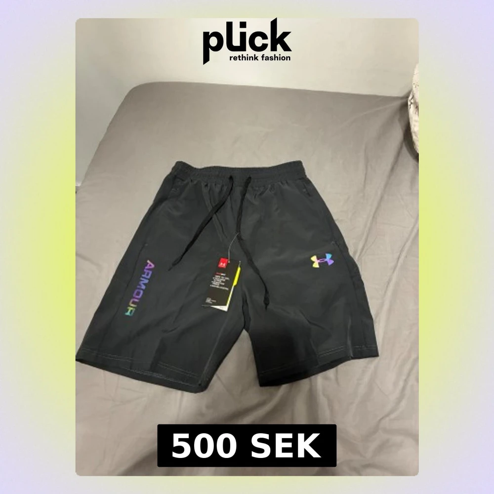 Svarta shorts från Under Armour med regnbågsfärgat logotryck på sidan och framtill. De har elastisk midja med snörning och är gjorda i lätt polyester som andas. Perfekta för gymmet eller löprundan, riktigt sköna och snygga med loose fit.