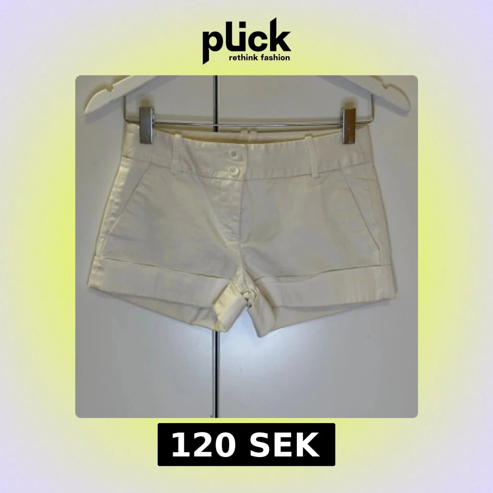 Snygga vita shorts med uppvikta ben och två knappar framtill. Perfekta för varma sommardagar. De har en klassisk design med fickor på sidorna.