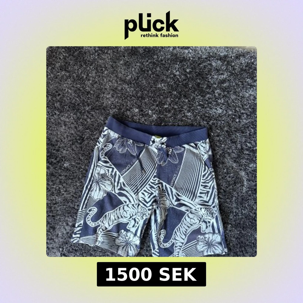 Snygga blå shorts från Versace Jeans med unikt zebramönster och tigrar i vitt. De har elastisk midja med snörning och två fickor bak. Materialet är mjukt och känns som bomull, perfekt för sommaren. Stora blommor och coola detaljer gör dem riktigt iögonfallande. Shortsen finns ej till salu på Versaces hemsida vilket gör de väldigt unika, shortsen är sann till sin storlek👍 pris diskuterbart vid smidig affär🙌