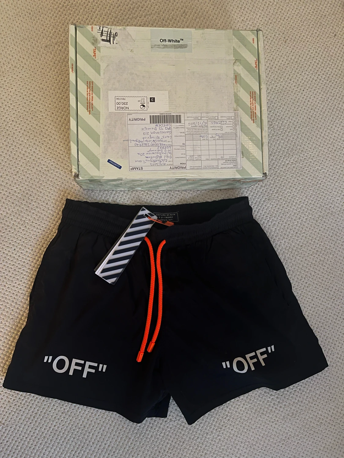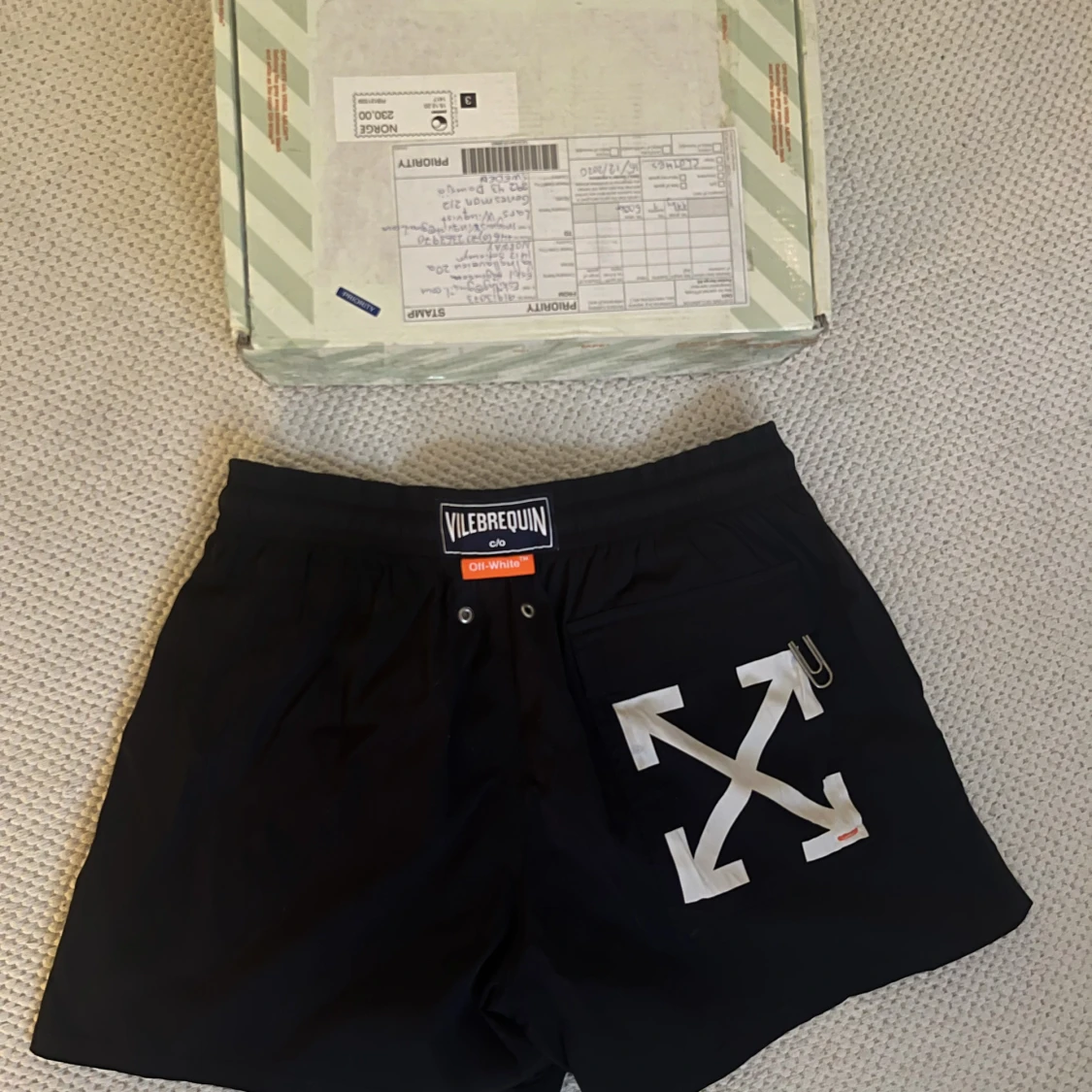 Off-White x Vilebrequin Arrows Moorise Swim Short Size Medium Gently used 100% authentic Comes with everything from the original purchase like tags and original box. No trades.