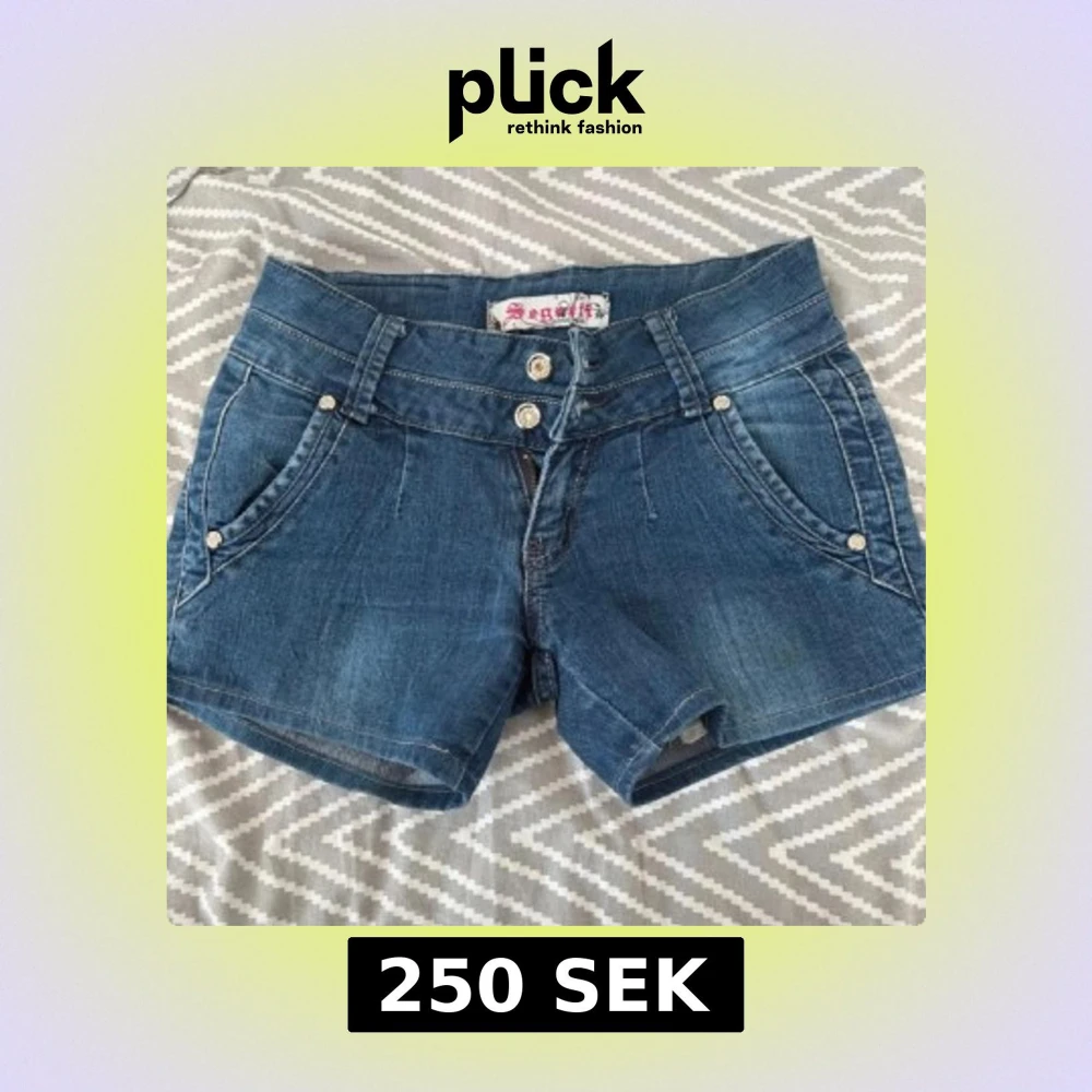 As snygga mörkblåa och lågmidjade jeansshorts. Oanvända då de e fel storlek. 2 knappar framme och fina detaljer där bak. Storlek Xs kanske S.