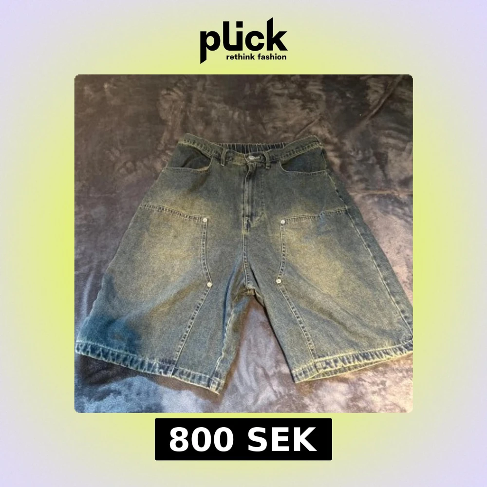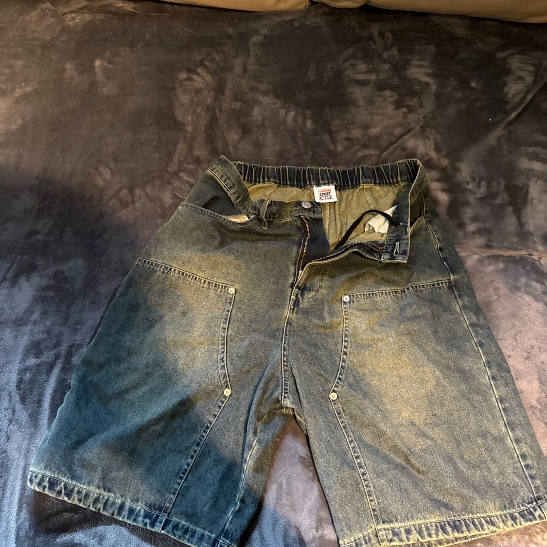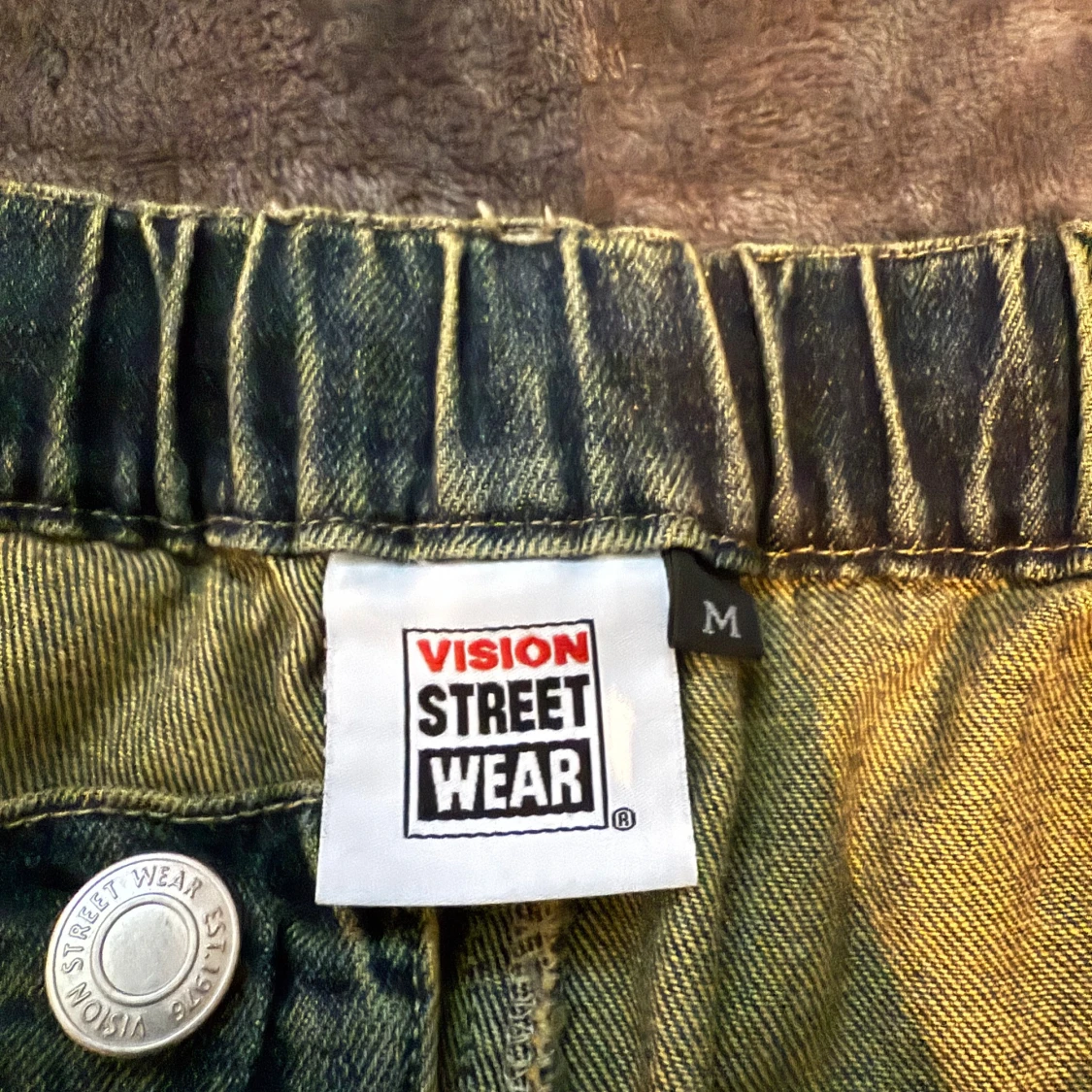 Säljer ett par loose fit jeansshorts från Vision Street Wear i klassisk blå denim. Modellen har elastisk midja, dragkedja och knapp, stora framfickor med nitar och två bakfickor. Perfekt för dig som gillar streetstyle och skater-vibe.