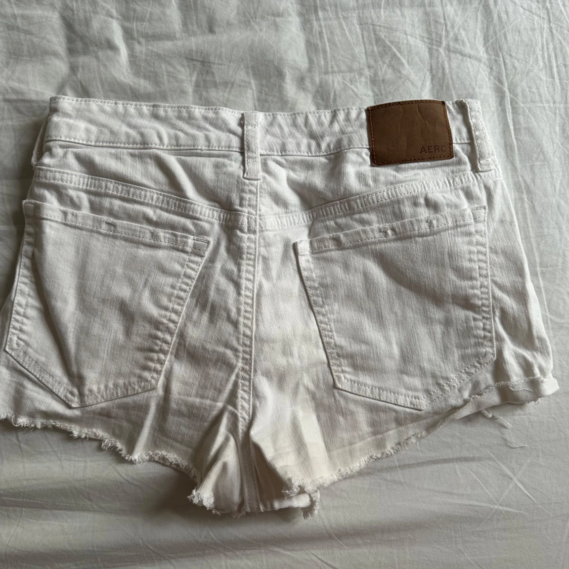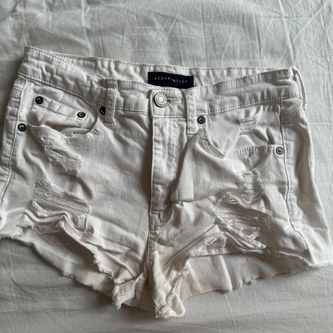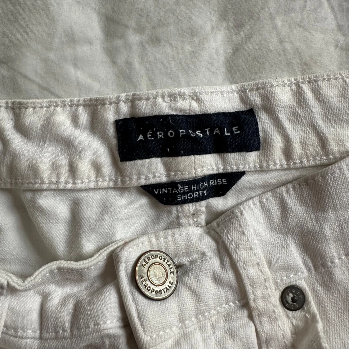 Snygga vita highwaist shorts från Aeropostale med slitna detaljer och råa kanter. Klassisk femficksmodell i bomull, perfekt för sommaren. Knappar och nitar i silverfärg ger en cool touch. Passformen är normal och shortsen har en vintage vibe.