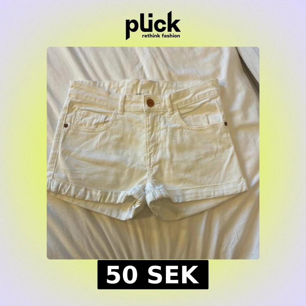 Tyvärr för små men inte mycket använda eller sönder. Snygga vita jeansshorts från H&M med klassisk femficksdesign och uppvikta benslut. Perfekta för varma dagar och enkla att matcha med olika toppar. Stängs med knapp och dragkedja framtill.