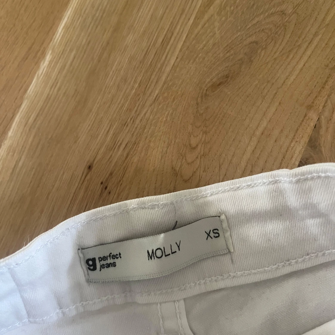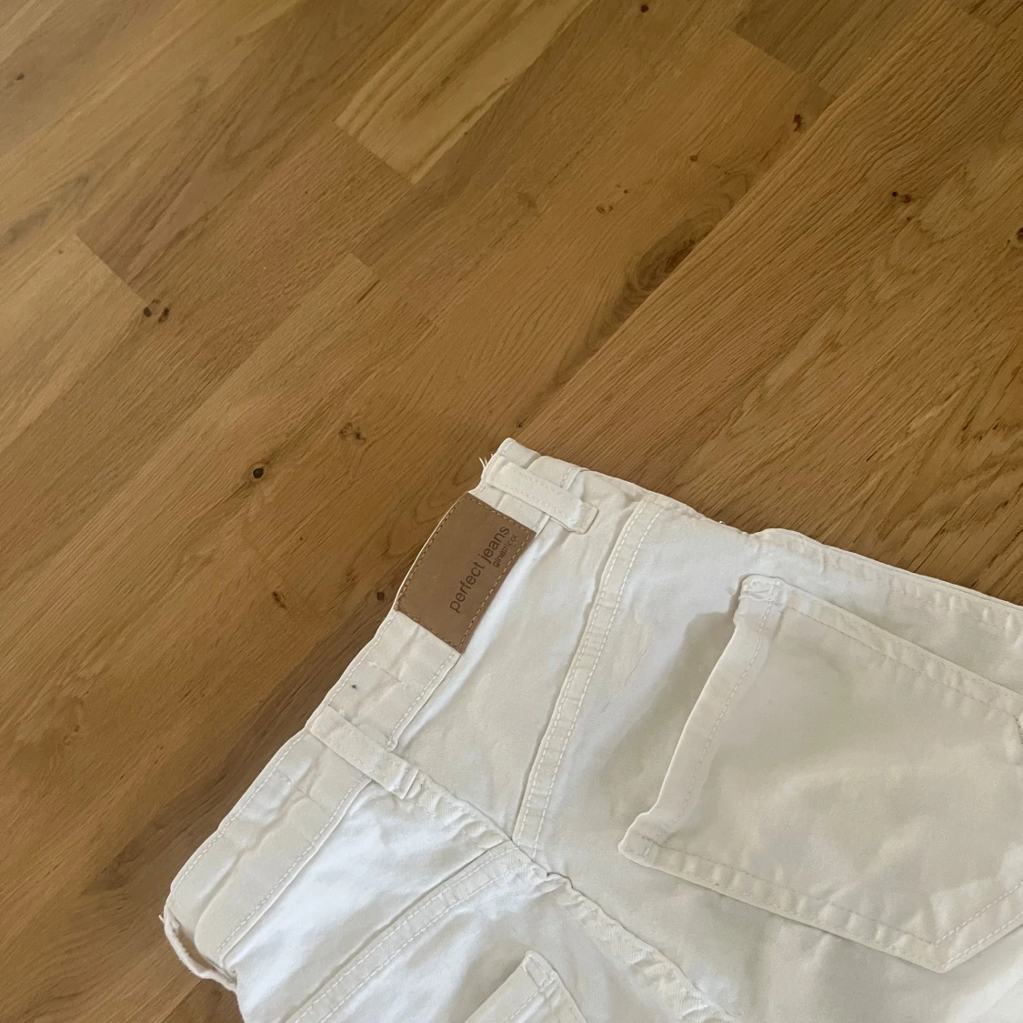 Snygga vita jeansshorts från Perfect Jeans, modell Molly. De är högmidjade med klassisk femficksdesign, knapp och dragkedja framtill samt uppvikta benslut. Perfekta för varma sommardagar och lätta att matcha med allt.